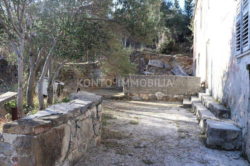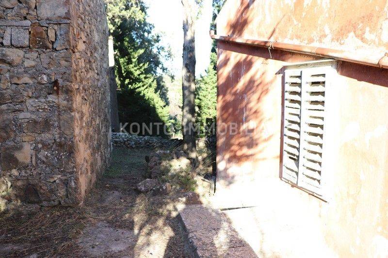 Autochthonous semi-detached stone house of approx. 200 m2, located in a secluded area, surrounded by forest, approx. 2 km from the sea. It consists of a ground floor and a first floor and a yard in front of the house. The house also has an auxiliary stone building with an area of approx. 35 m2. Everything is completely for adaptation. The house has electricity and water connection. No vehicular access. There is a possibility to purchase additional land next to the house or near the house. For all those who want peace and quiet and have a bit of a Robinson spirit, this is the ideal property.