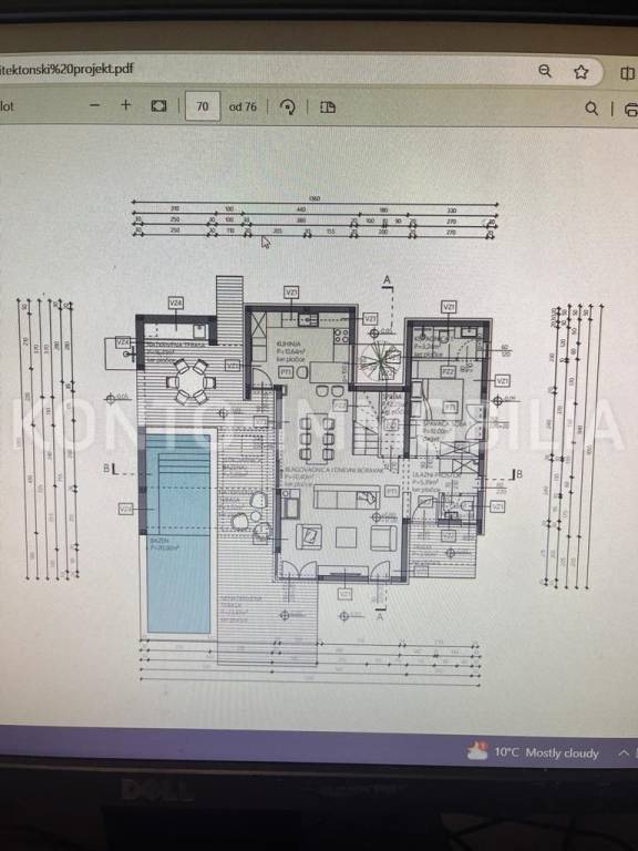 It is designed as a two-story, four-room residential unit, which on the ground floor contains an entrance area, a guest toilet, storage rooms, a bedroom with a bathroom, a kitchen, a dining room and a living room (open space), with excellent communication with a semi-covered terrace in the extension, which houses a swimming pool with sun deck and summer kitchen with barbecue. The staircase leads to the first floor, where there are two comfortable bedrooms, each with its own bathroom, additional bathroom, hallway, and two large uncovered terraces with a beautiful view of the sea.