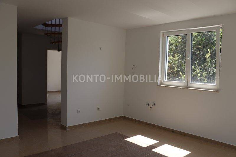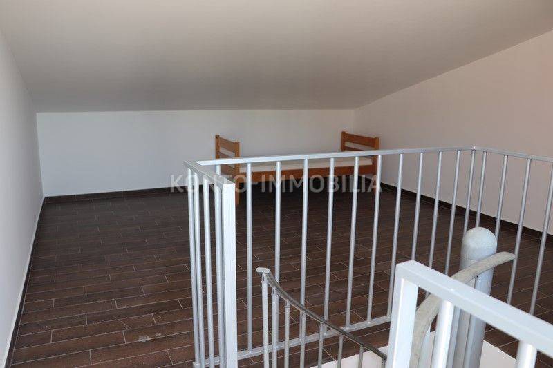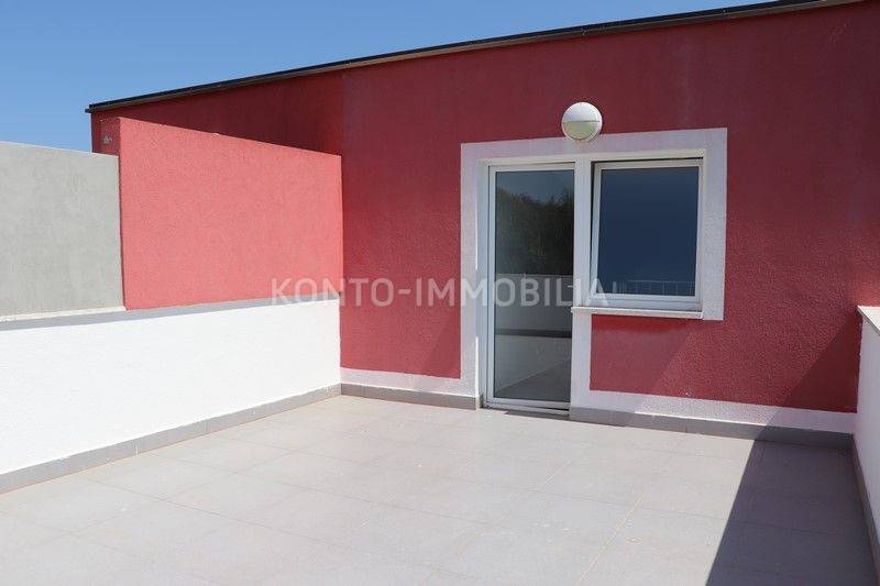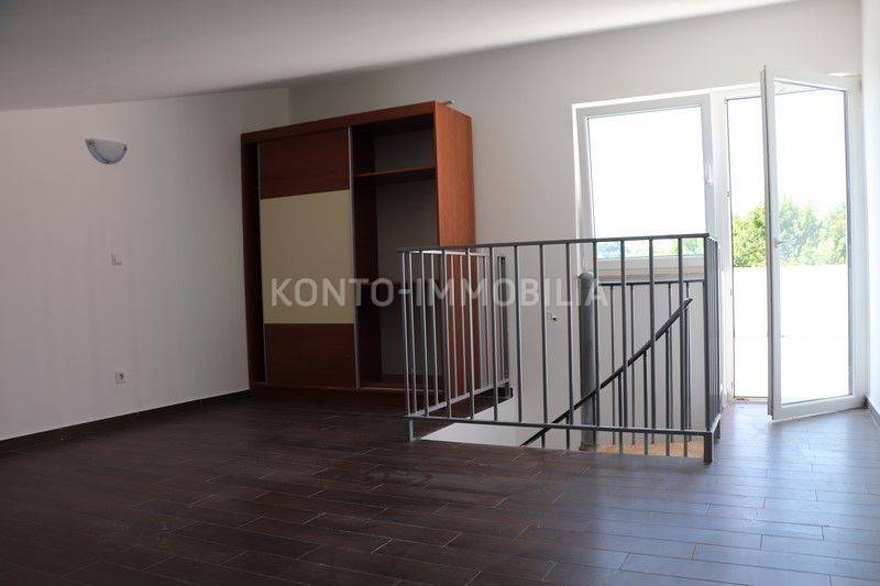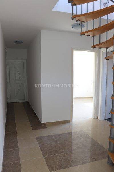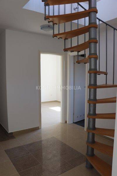 Two-story apartment, located on the 2nd floor, net usable area 75.25 m2, unfurnished. The first floor of the apartment consists of a spacious hallway, kitchen with living room, bedroom, bathroom and loggia, while on the second floor there is a room and a large terrace (26.46 m2) with a view of the sea. The apartment has one parking space in the garden of the building. Attractive location, 20 minutes walk to the center and 3 minutes walk to the sea.