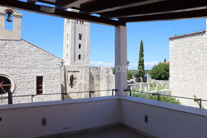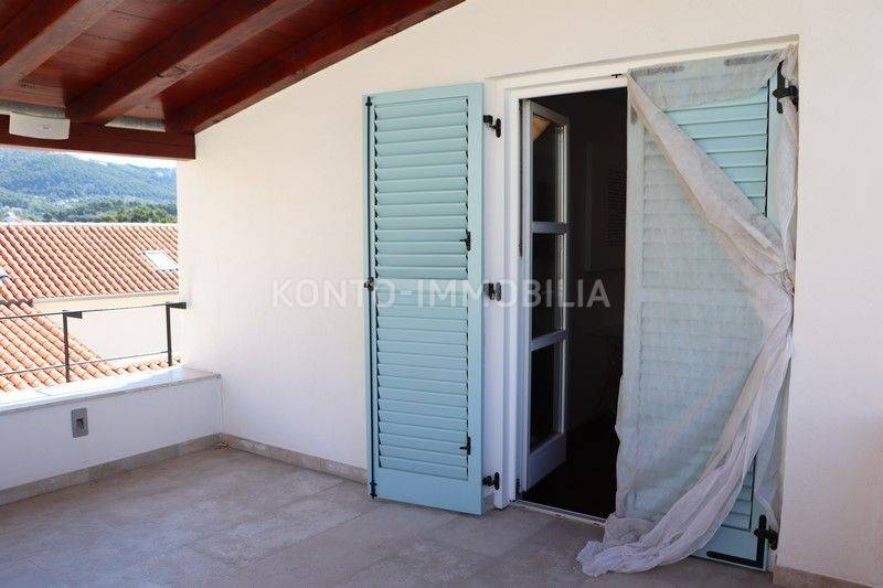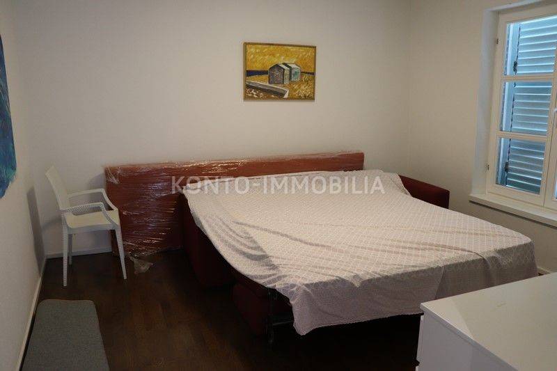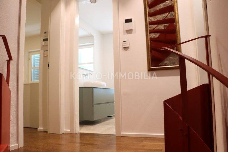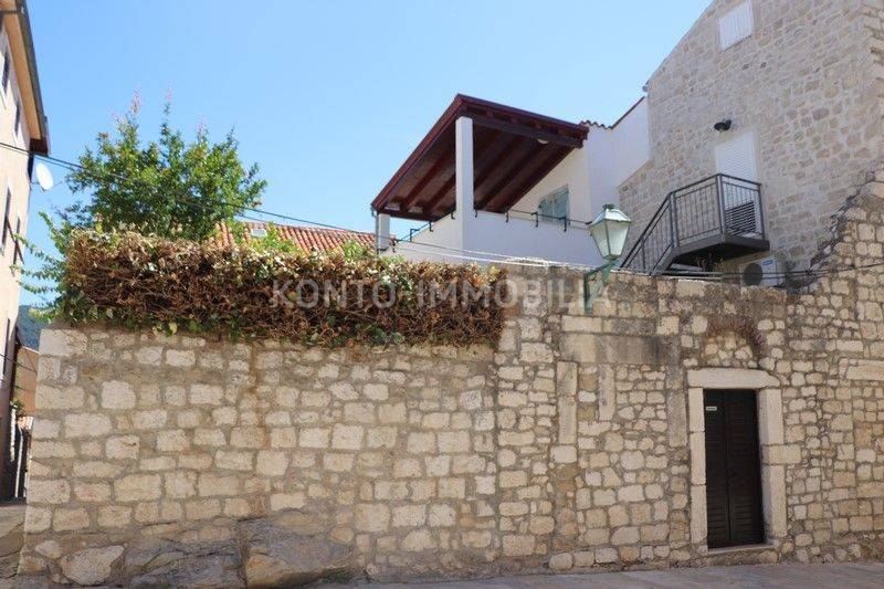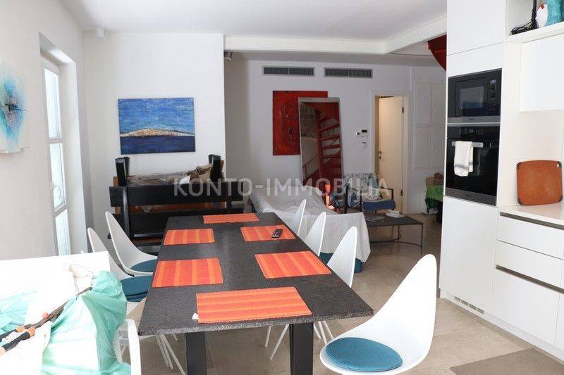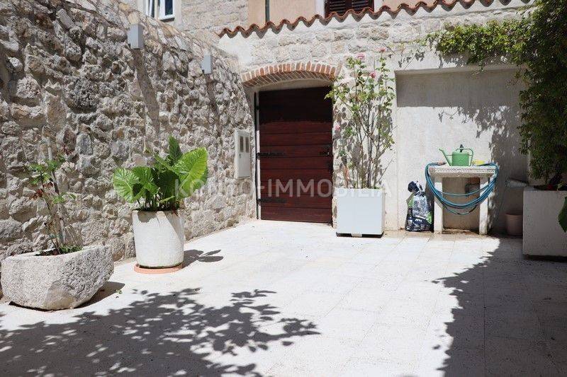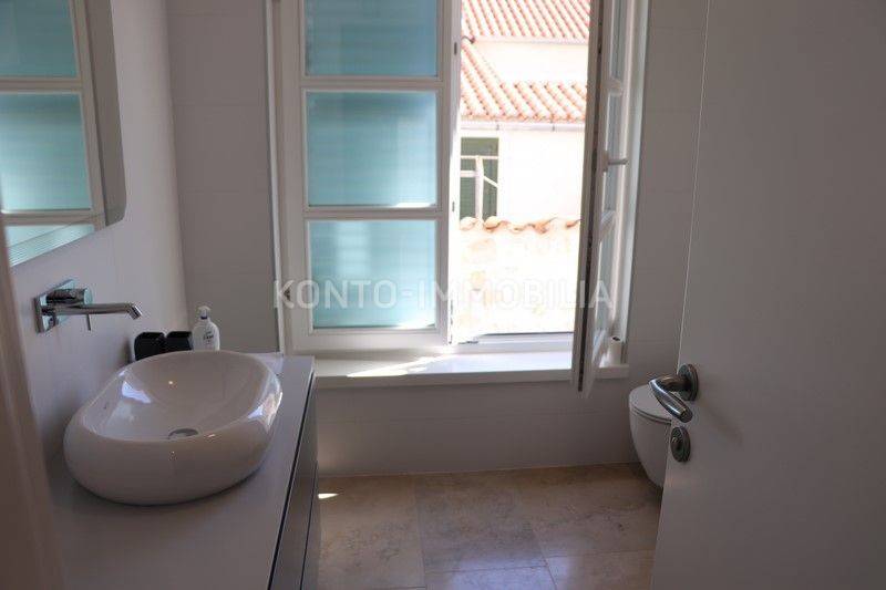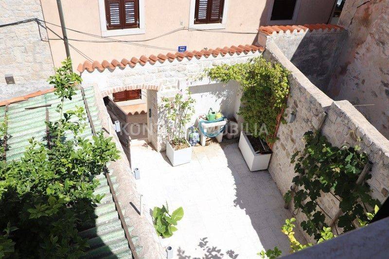 The house consists of a ground floor and two floors. The ground floor has a kitchen with a dining room and a living room, a bathroom, a boiler room and stairs to the first floor, which has two bedrooms, one of which has a balcony and a bathroom, while the second floor has another bedroom with its own bathroom and a beautiful spacious covered terrace of 10.70 m2, which offers a wonderful view of the sea, the city harbor and the bell towers. Fully furnished and equipped with all appliances.