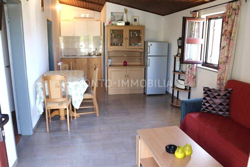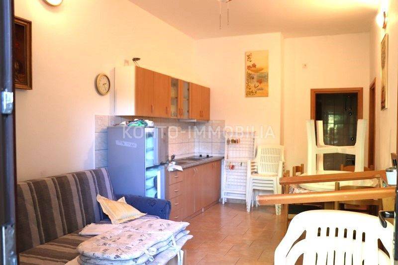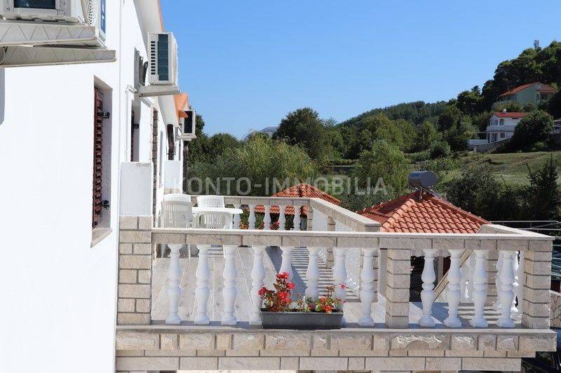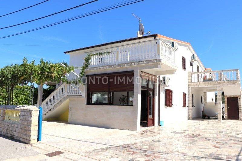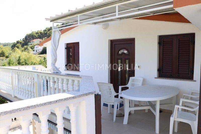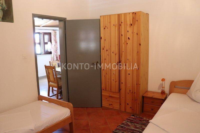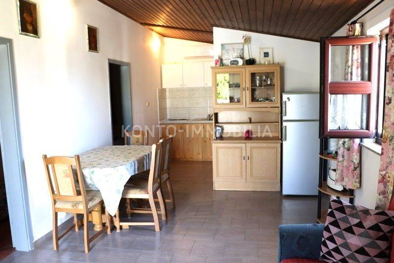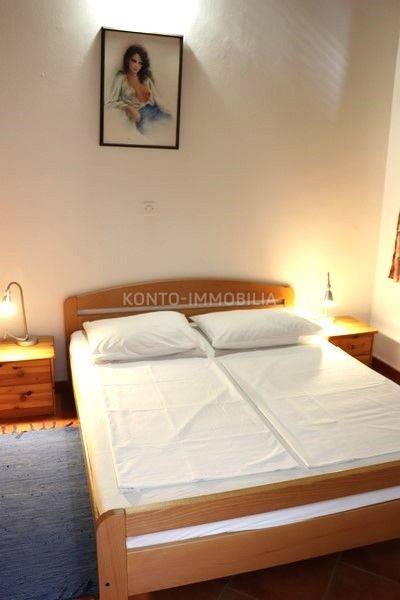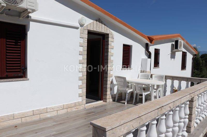 On the first floor there are 3 two-bedroom apartments 2S+DB, each with a large terrace. All apartments are fully furnished and equipped with all necessary household appliances. Each apartment has air conditioning (heating/cooling), the floors are ceramic, the house is connected to the sewage system, one water and electricity connection, each apartment has its own hot water boiler, PVC windows and doors with shutters. The roof is new, with insulation. Large parking in the yard of the house. The house was legalized in 2014.