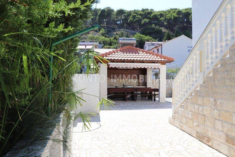 On the ground floor there are three apartments, two two-bedroom apartments 2S+DB and one one-bedroom apartment 1S+DB, 3 storage rooms, a covered outdoor kitchen, which is an ideal place for socializing and an outdoor shower.