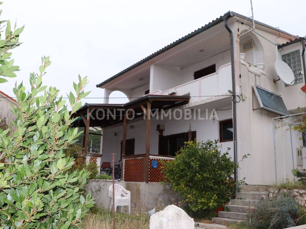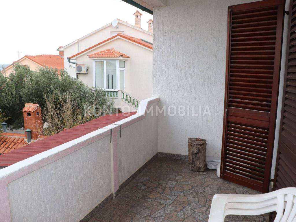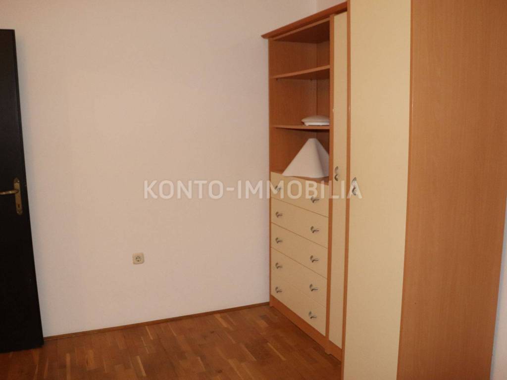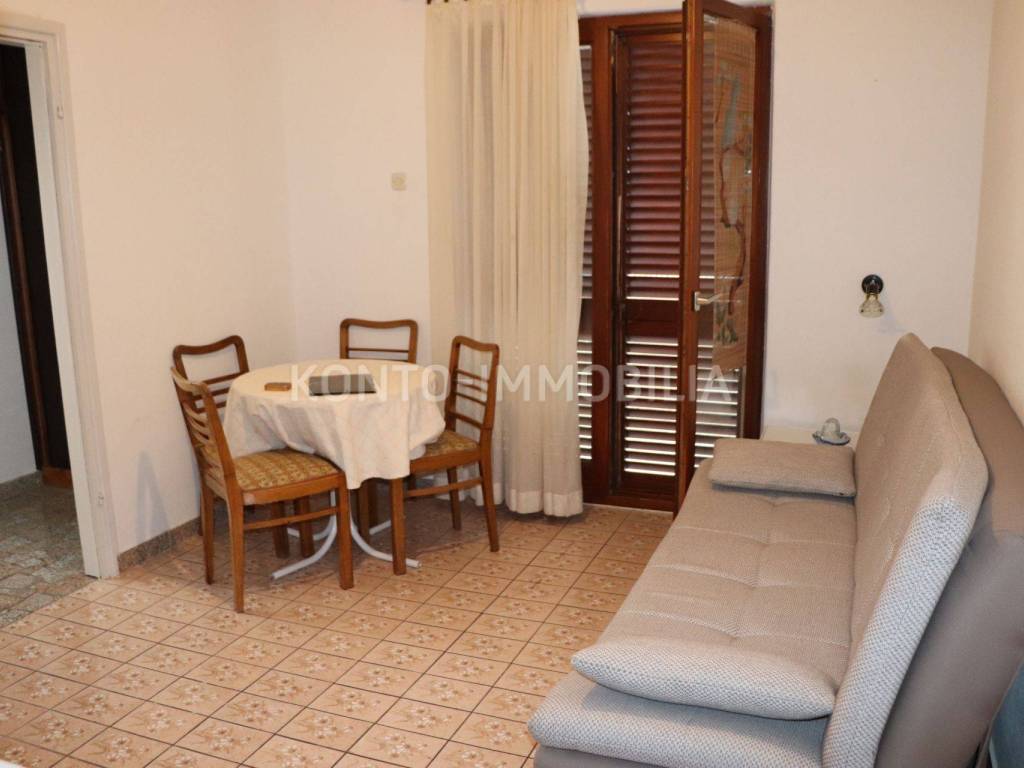 For long-term rent, a one-bedroom apartment on the first floor, consisting of a hallway, kitchen with living room, bedroom, bathroom, terrace and storage room on the ground floor under the stairs. Separate external entrance. The apartment is furnished, there is air conditioning (heating/cooling) in the kitchen and living room. The terrace is spacious with a beautiful view of the sea. Private parking in the yard. There is a possibility to additionally rent a garage with storage room. Monthly rent of the apartment 500.00 EUR + utilities + one month's rent deposit.