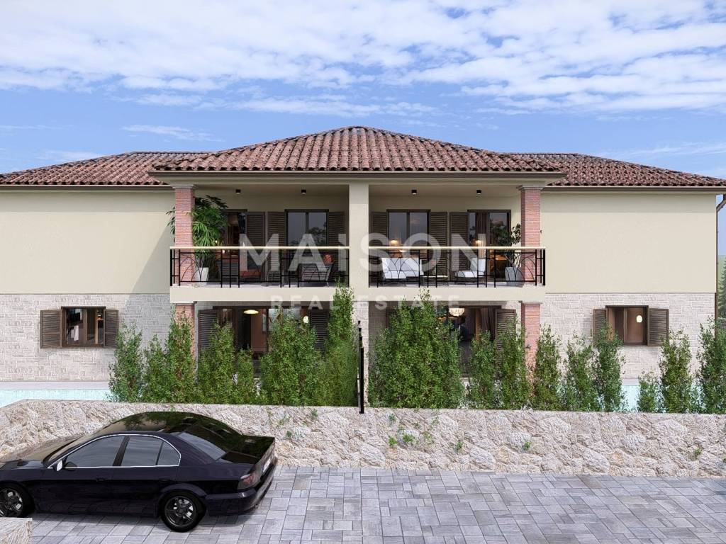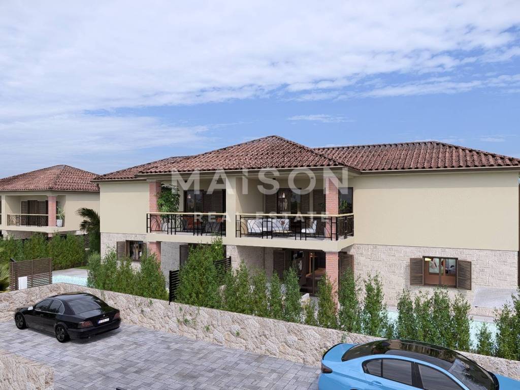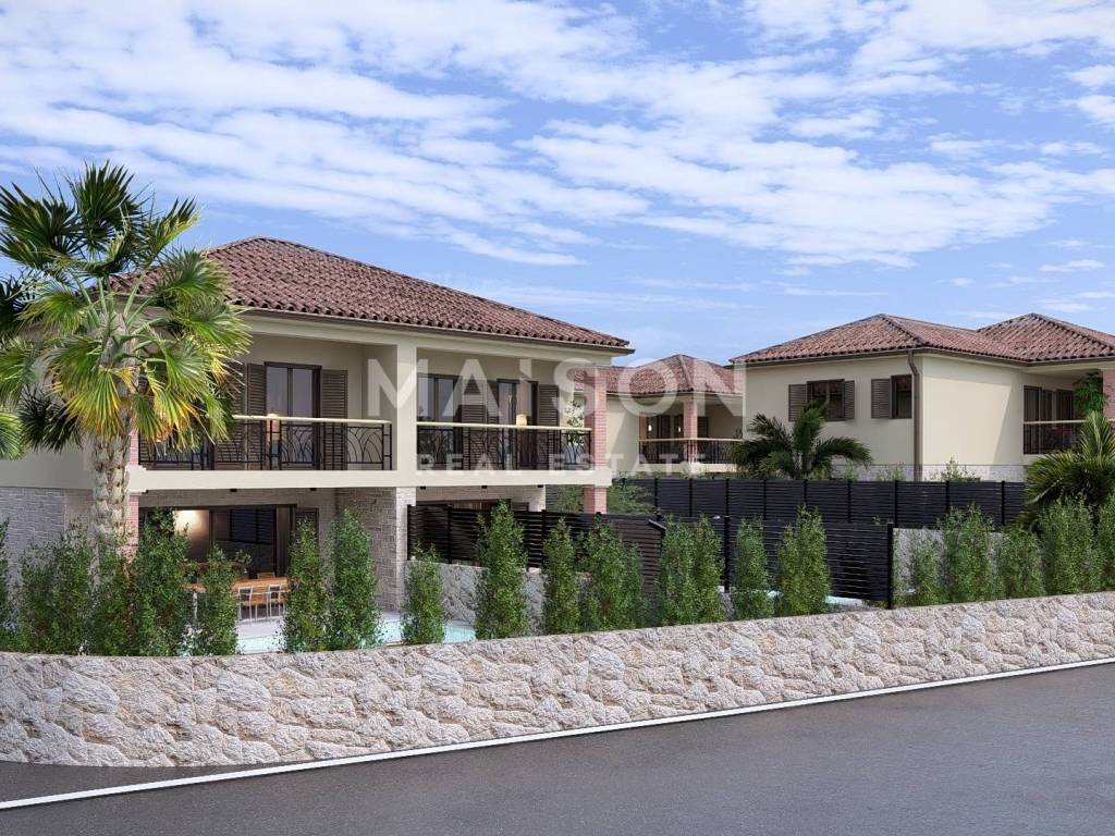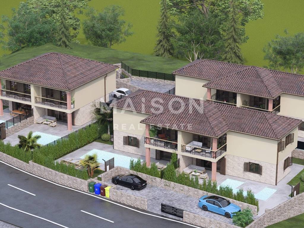 U dvije vile planirani su stanovi površine 135 m², dok treća vila sadrži dva stana od 117 m². Sve stambene jedinice raspoređene su na dvije etaže: u prizemlju se nalazi prostrani dnevni prostor povezan s kuhinjom i blagovaonicom, gostinjski toalet i natkrivena terasa, a unutarnje stepenice vode na kat gdje se nalaze tri spavaće sobe i dvije kupaonice. Glavna spavaća soba ima vlastitu kupaonicu, dok druge dvije koriste zajedničku, a obje imaju izlaz na natkrivenu terasu. Svaki stan predviđen je s privatnim bazenom, čime se osigurava potpuna udobnost i diskrecija.