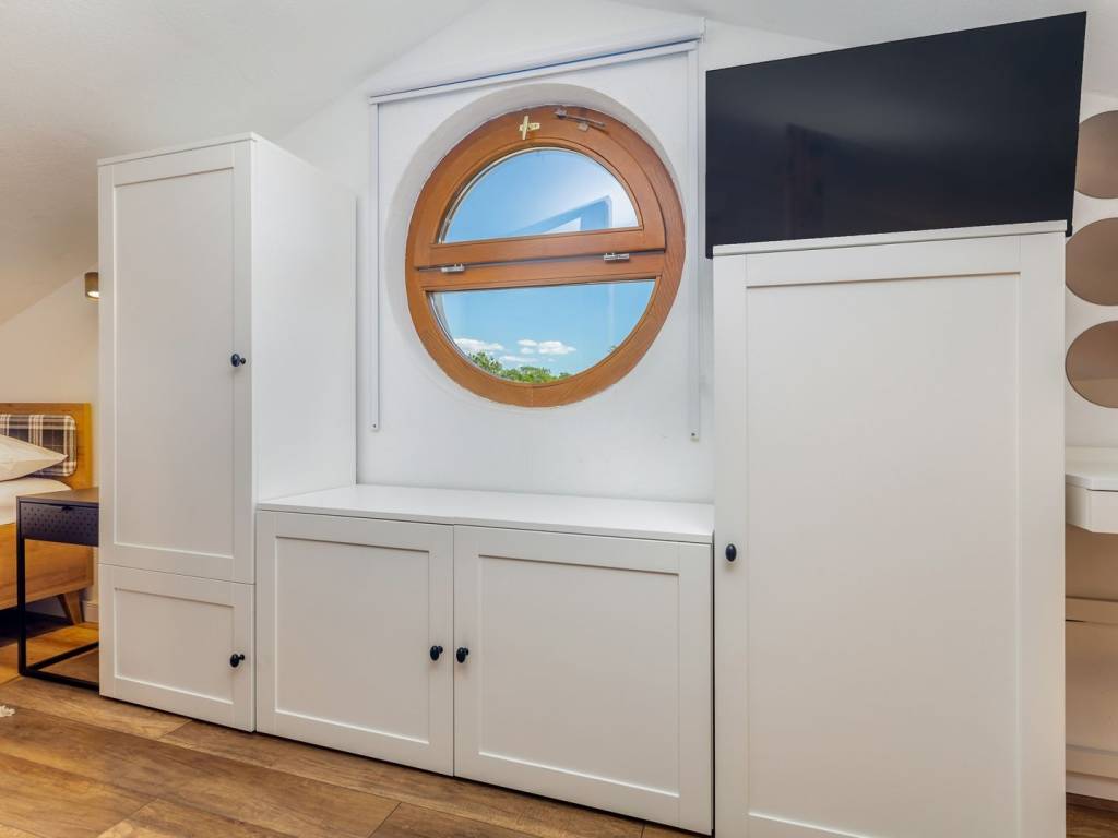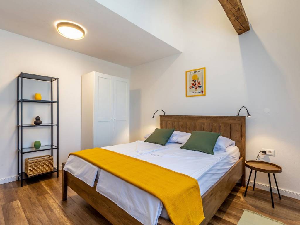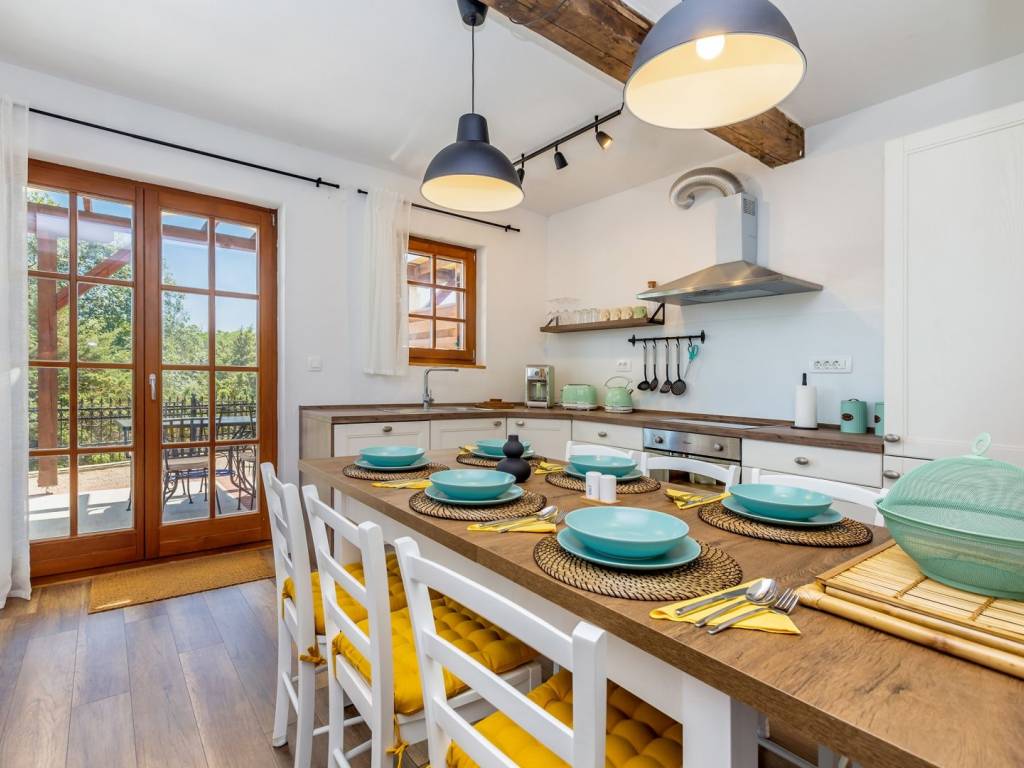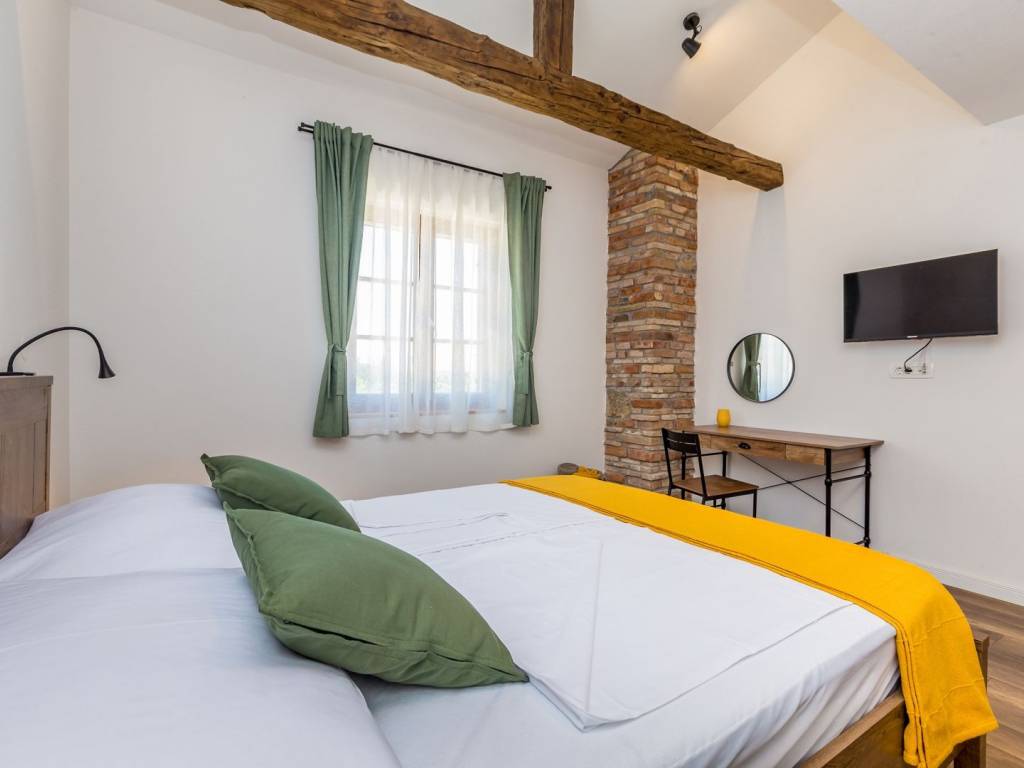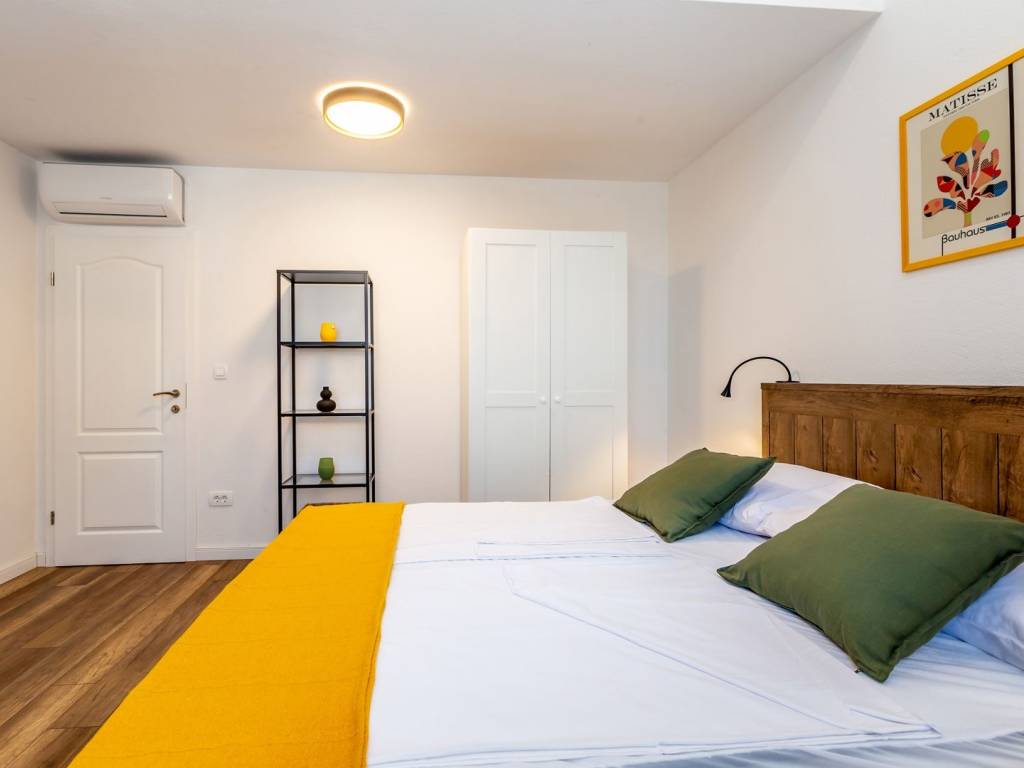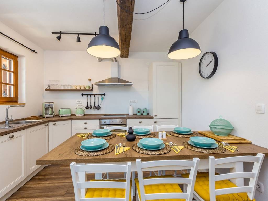 KRK ISLAND, MALINSKA - Semi-detached house with swimming pool for daily rent Adriatic Dream Holiday Home is designed as a combination of Mediterranean style with modern industrial elements. Semi-detached house with private pool consisting of ground floor, first floor and gallery. Swimming pool (size 21.5 m2) is with mild salt water which is perfect combination for keep water crystal clean without adding chlorine. Pool have stairs inside for easier access and also includes sitting bench with jets. On the ground floor there is a living room, a bathroom, a kitchen with a dining room with exit on a terrace and sun deck. On first floor are two bedrooms with double beds and a bathroom. On second floor or gallery is open space with two single beds (200 x 90). Kitchen is fully equipped with toaster, kettle, filter coffee machine, dishwasher etc. Free Wi-Fi. Each bedroom plus living room have their own TV with satellite programs. The house is fully air-conditioned with a total of five air conditioners. Gas barbecue for the guests. Two private parking places. The house is decorated in a way to ensure your pleasant and relaxing stay.