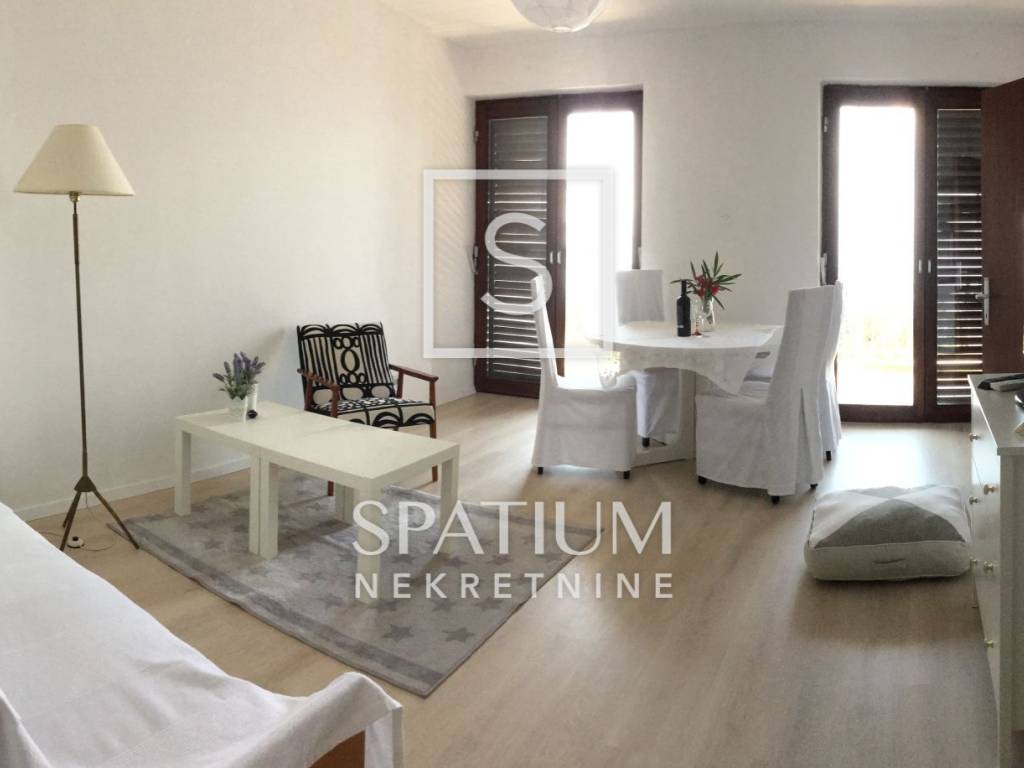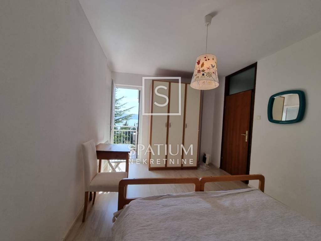 NOVI VINODOLSKI, we offer an apartment near the sea. It is located on the 1st floor of the house, with a beautiful view of the sea and a garden area of 72 m2, which allows the arrangement of parking spaces or some additional content. The apartment with a total area of 75m2 consists of an entrance hall, kitchen, dining room, living room, two bedrooms, one of which has its own balcony, a storage room and a bathroom. From the living room there is an exit to a spacious terrace, facing south and with a beautiful view of the sea. Lots of natural daylight makes this space comfortable to live in. A property in an urban part of the city, a quiet neighborhood, close to the sea and all the necessary amenities are characteristics that contribute to the quality of housing. An excellent choice for year-round living, vacation with the possibility of renting.