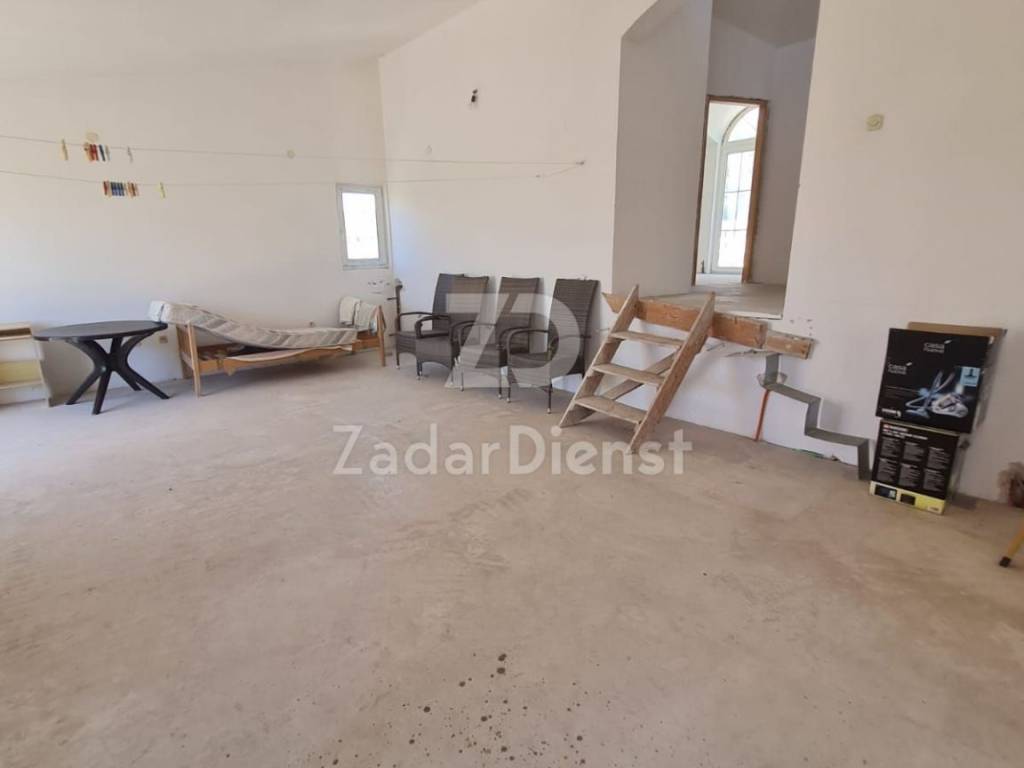 A two-storey house for sale in Pakoštane, gross area of ​​223 m2, approx. 600 meters from the sea. The house has a total of three floors: basement, ground floor and first floor. On the high ground floor there are two apartments, each approx. 50 m2, consisting of two bedrooms, bathroom, kitchen with living room and terrace.