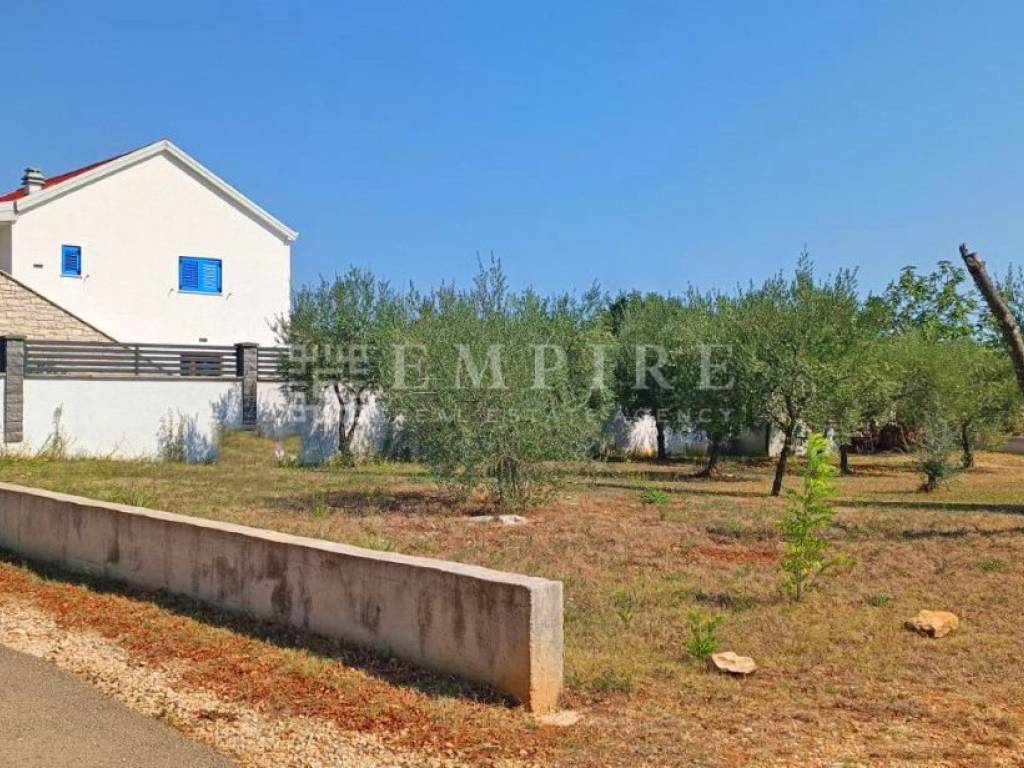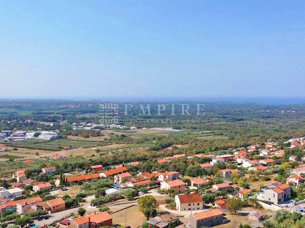 Na prodaju u Kaštelir Labinci, građevinsko zemljište od 836 m² s maslinama i pogledom na more. Infrastruktura u blizini. Mirna lokacija!