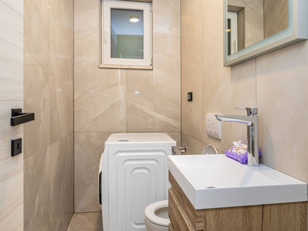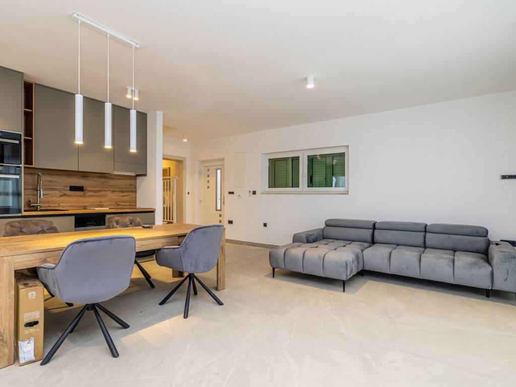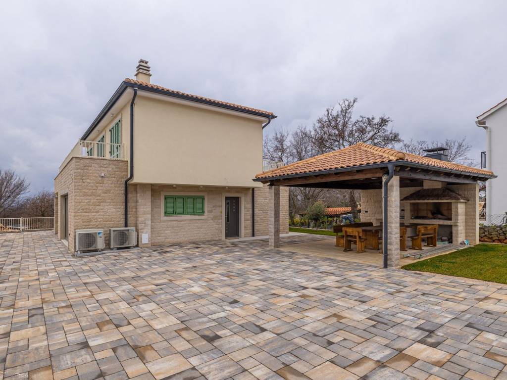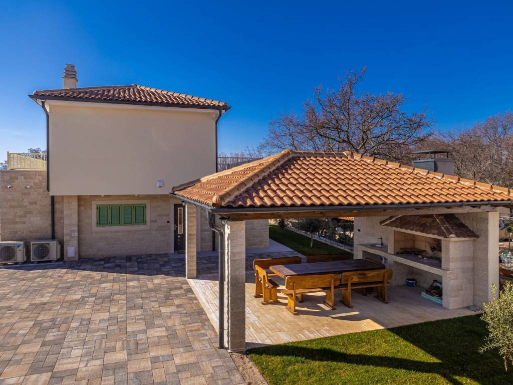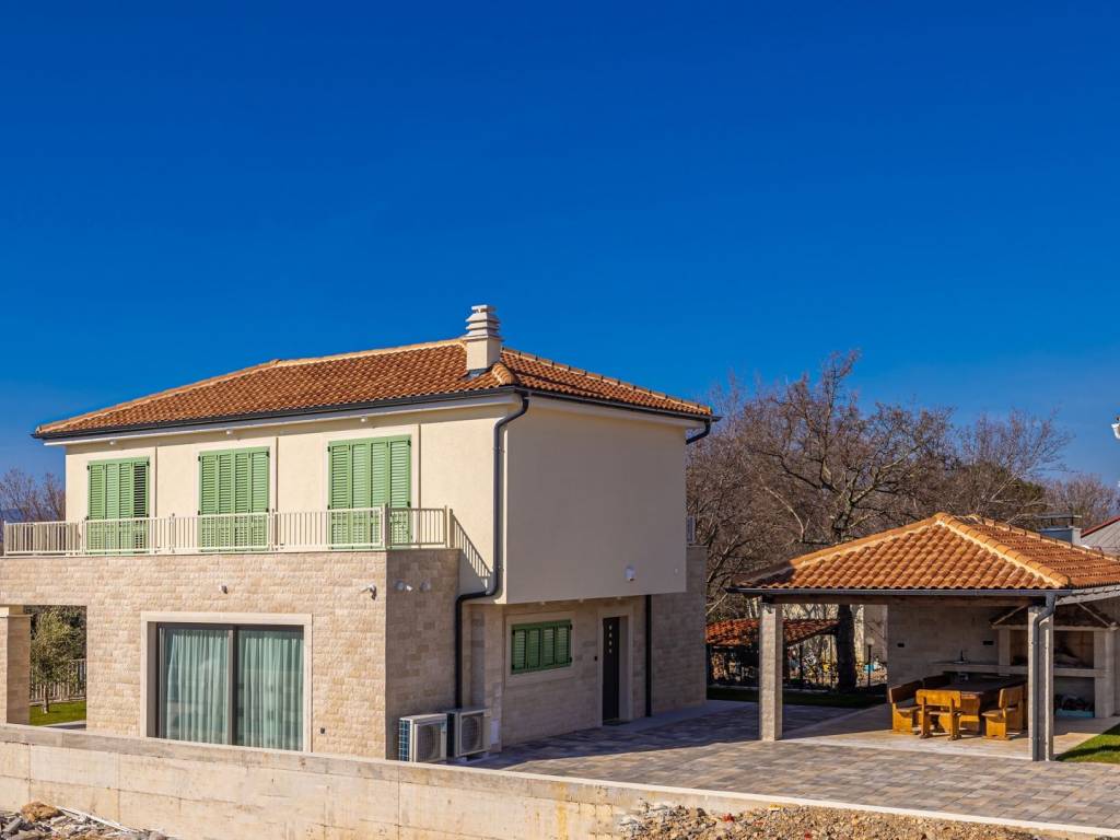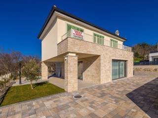 A new rustic villa for sale near Malinska on the island of Krk. Located in a peaceful setting, this property combines traditional style with modern design, perfect for family life, vacation or as an investment for tourist rental. The villa is spread over two floors. On the ground floor there is a bedroom with its own bathroom, a guest toilet, a machine room, and a spacious open living room with kitchen and dining area. The living room opens onto a large terrace and swimming pool, creating an ideal space for relaxation. Rustic details, such as the stone cladding on the facade, contribute to the authenticity and warmth of this home. Upstairs there are three bedrooms, all with access to a shared terrace with a beautiful sea view. One bedroom has its own bathroom, while the other two share a shared bathroom. The garden has been carefully landscaped, including a private pool, a sunbathing area and a covered terrace with a barbecue. The yard is enriched with greenery and olive trees, perfectly integrated into the Mediterranean style. The villa is fully furnished and the furniture is included in the price, making it ideal for immediate move-in or rental. It is equipped with a modern air conditioning system and underfloor heating for maximum comfort all year round. The villa also comes with parking for several cars. This luxury property offers the perfect combination of privacy, comfort and proximity to the sea, making it an excellent opportunity to purchase in an attractive location on the island of Krk.