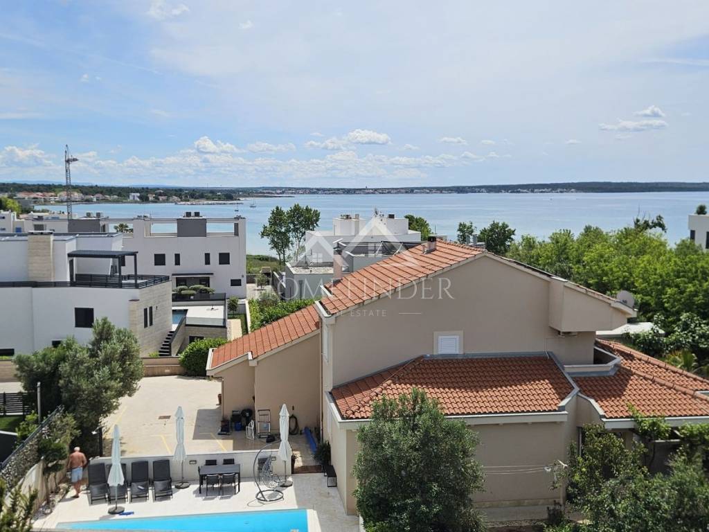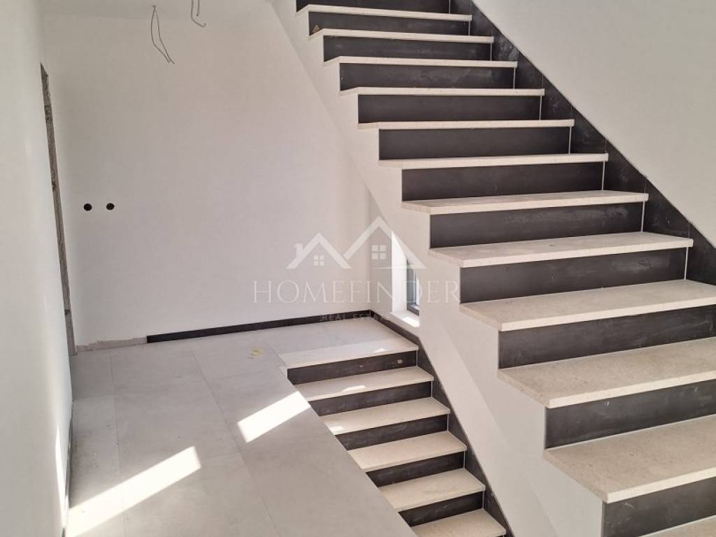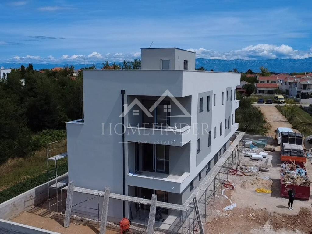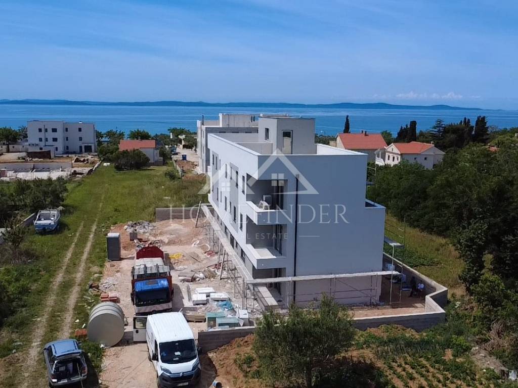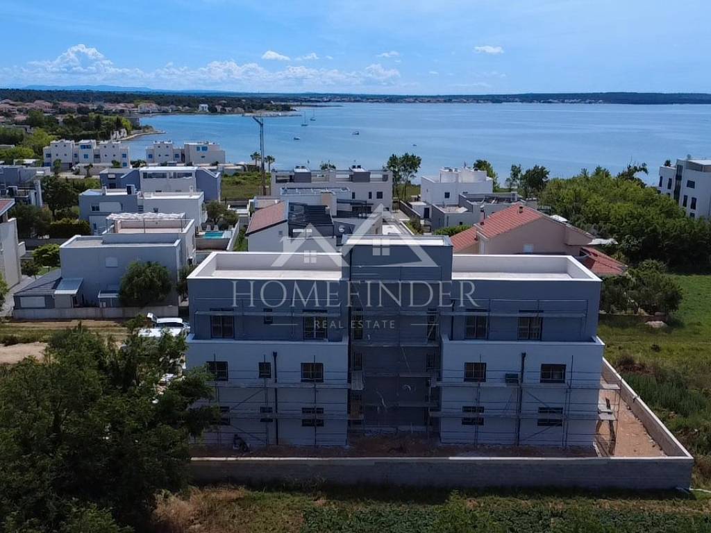 Apartment S5 – Modern apartment under construction with a swimming pool on the terrace, 200m from the beach, with a sea view For sale is an apartment in a new building, located just 200 meters from the arranged beach, with a beautiful sea view. The apartment consists of a spacious living room, two bedrooms, a bathroom, an additional toilet, a hallway, a covered terrace and a roof uncovered terrace with a swimming pool. The price also includes two parking spaces. The building is built with thermal insulation brick blocks, and the apartment is equipped with electric underfloor heating and four air conditioners for optimal temperature throughout the year. PVC joinery with triple-layer glass, roller shutters and mosquito nets ensure high energy efficiency, while the facade is insulated with 10 cm of polystyrene. The floor coverings combine high-quality ceramics and laminate. The drainage is solved with a bio-purifier. S5 area m2: Bathroom 5.40m2 Kitchen, dining room, living room 35.79m2 Bedroom 12.59m2 Bedroom 10.18m2 Covered terrace 6.85m2 Uncovered terrace 72.44m2 2 parking spaces 25.00m2 Total S5: 168.25m2 Energy certificate: A Floor plan and use: 1.10.2025 Move-in: summer 2025. For more information and an agreement, please feel free to contact us! Contact: Kristian Mikec (training associate) E-mail: info@homefinder.hr Mob: 095 299 9996 www.homefinder.hr