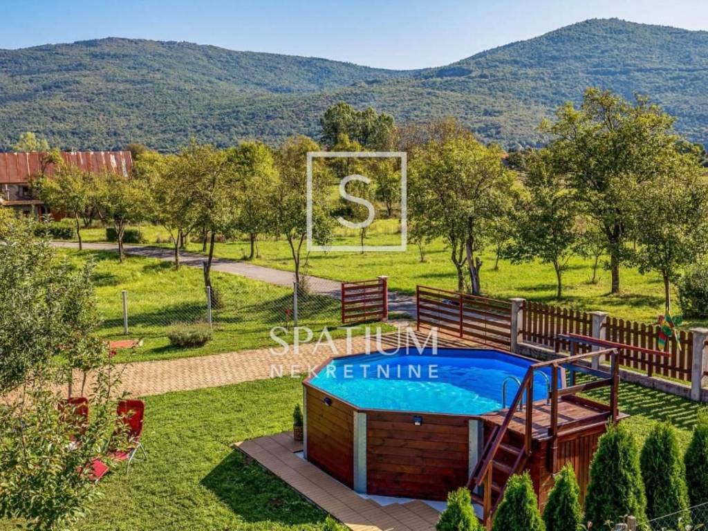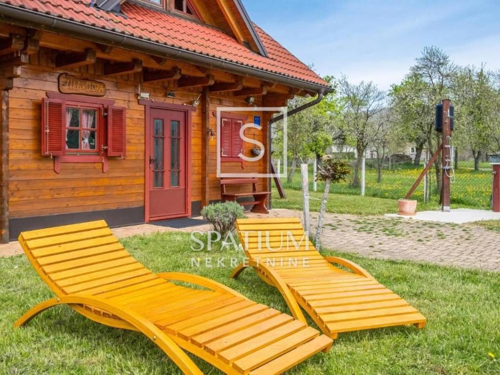 LIČKO LEŠĆE offers a detached wooden holiday house with a swimming pool and a spacious garden. It is located in a peaceful and beautiful environment, not far from the river Gacka. Beautifully decorated, fully equipped, it consists of the ground floor where there is a kitchen, dining room, living room, covered terrace, and the first floor where there is a spacious family room with access to the balcony and a bathroom. Neat and well-maintained, equipped with air conditioning, wood-burning fireplace, alarm system. Inside the beautiful and well-maintained garden there is a prefab swimming pool, barbecue, space for socializing and sports activities. An excellent choice for personal use or a very good investment in tourism. Property worthy of attention!!