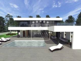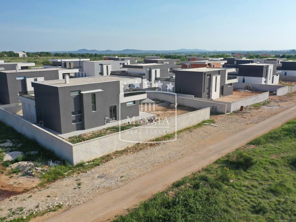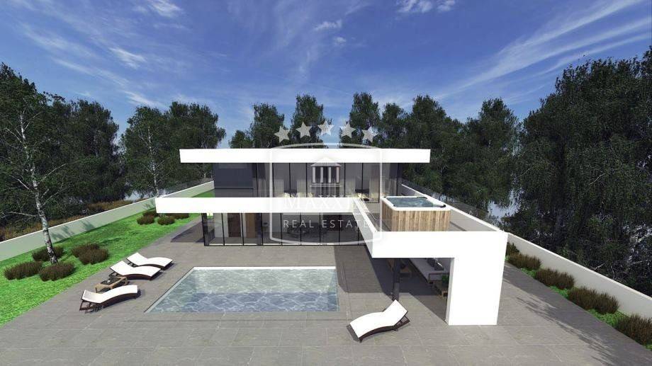 A beautiful, luxury villa under construction located in a luxury resort in the area of Gornji Zemunik. The villa is located on a plot of 723m2 and is separated from the other villas, as well as the main roads to create a peaceful space for rest and relaxation. It consists of a ground floor (90.41 m2) with: - kitchen with dining area - living room, - bedroom, - separate bathroom connected to the bedroom - toilet, - the main staircase leading to the first floor. On the upper floor (71m2) there are three rooms, each of which has its own bathroom and access to a shared balcony through large panoramic cliffs that allow unique space lighting.