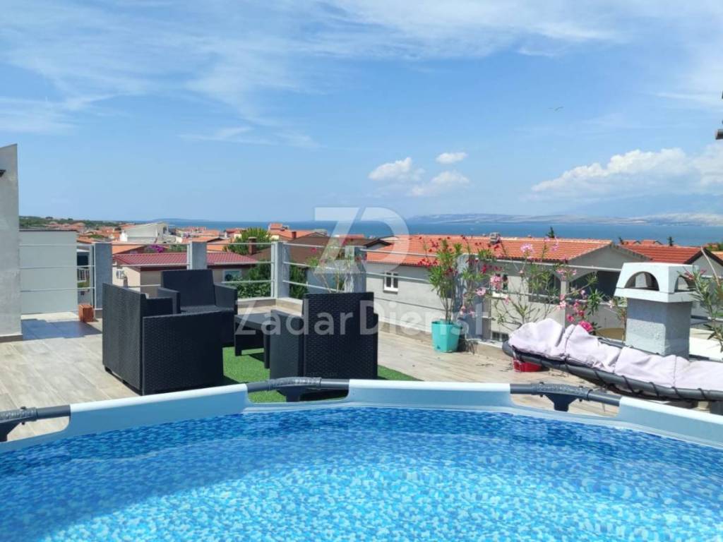 A house with 4 apartments with a total area of 193.51 m2 is for sale. It consists of a basement, ground floor, first floor and a roof terrace with a sea view. In the basement there is one studio apartment with a living room, kitchen and bathroom.