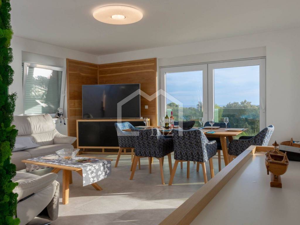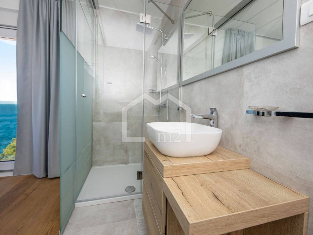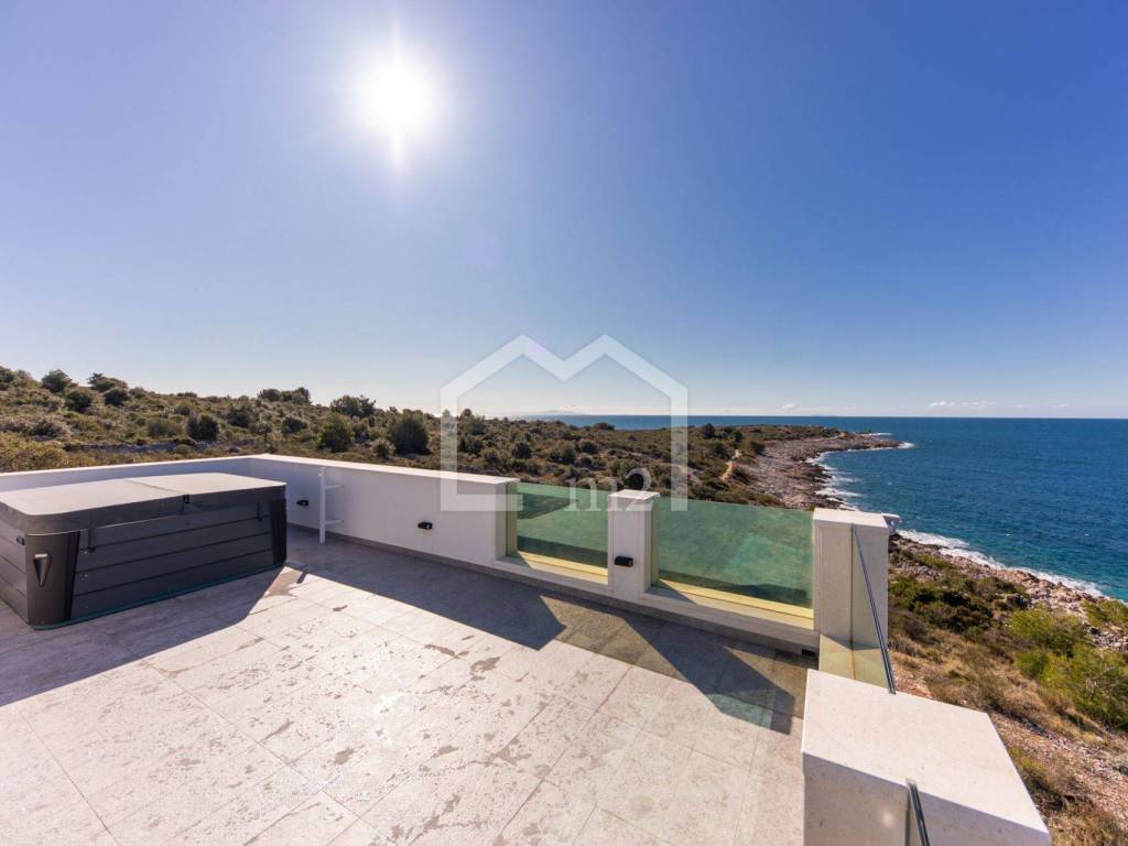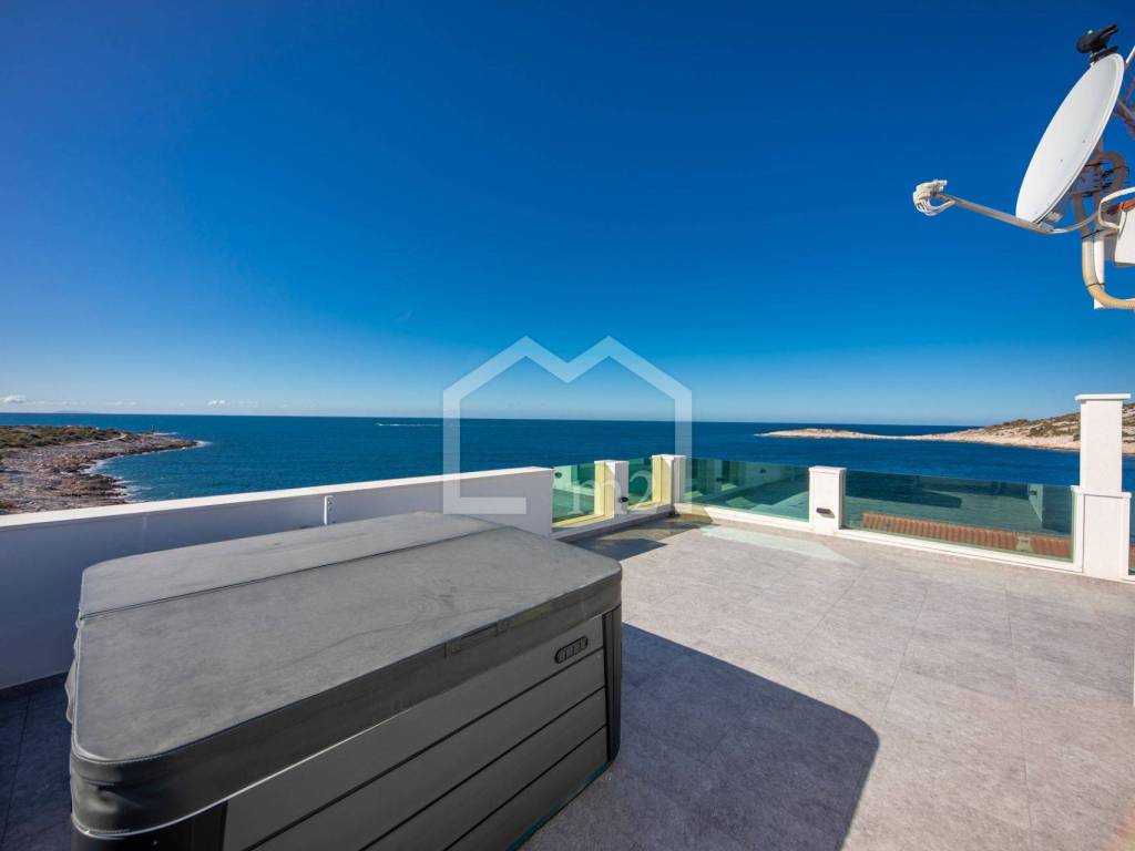 We mediate in the sale of luxury new buildings in Stivašnica Bay, not far from the center of Rogoznica. The plot has an area of ​​390 m2, and the house has a living area of ​​300 m2. It consists of a basement, ground floor, first and second floor. In one part of the ground floor there is a garage of 20 m2 from which you enter directly into the house, a machine room, a technical room, the other part consists of a kitchen, a bathroom, a room, and a large room intended for a home cinema. living room, bathroom, and a covered terrace with a pool of 18 m2. The second floor consists of three bedrooms, each with its own bathroom. On the last floor there is a sauna with a bathroom and a 60 m2 roof terrace with a jacuzzi. From every floor you can enjoy the view of the open sea. A road leads to the house, and parking spaces are provided within the plot. All facilities necessary for life are only a few kilometers away. The beach is only 30 m from the house, and the airport is 30 km away.