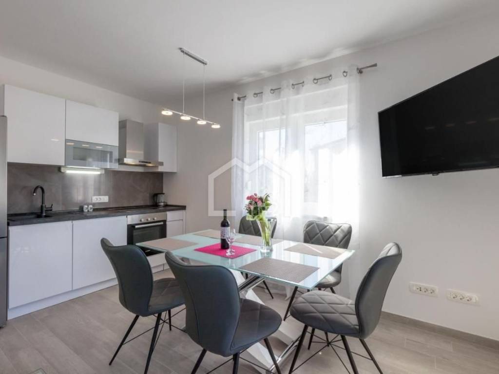 We mediate in the sale of newly built houses in Stivašnica Bay in Ražnje, not far from Rogoznica. It is located on a plot of 858 m2, and the house has a living area of 389 m2. It consists of a basement, ground floor, first and second floor. The basement of the house is finished and fully furnished. The ground floor is also finished and furnished and consists of a living room, three bedrooms, two bathrooms, a small toilet, and a covered terrace. The first floor is unfinished and needs to be finished and furnished. On the last second floor there is a space of 40m2 where there can be a studio apartment which is only incarnate and needs to be arranged and furnished, as well as a large terrace on which tiles have been laid. From every floor you can enjoy the view of the open sea. A road leads to the house, and parking spaces are provided within the plot. All facilities necessary for life are only a few kilometers away. The beach is only 150 m from the house, and the airport is 30 km away.