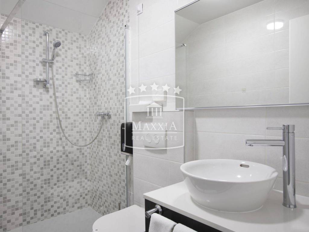 Moderni namještaj, veliki bračni kreveti i kupaonice.