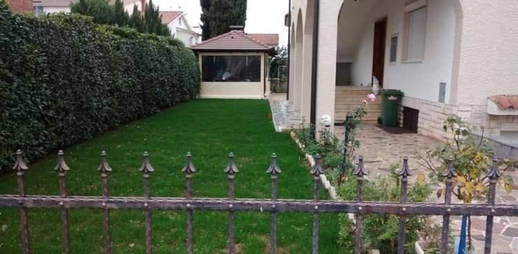 In a quiet suburb of Poreč, at a pedestrian distance from Pical Beach and from the city center, a detached two -storey house for sale. The house consists of 5 apartments, the apartments are equipped, each apartment has its own terrace. Apartments on the ground floor have a common garden and barbecue space, and three apartments are located on the 1st floor of the house, each with their covered terrace. All apartments have an equipped kitchen with a dining room, sofa and satellite TV. Each apartment has a covered terrace overlooking the garden and a quiet surroundings. Two apartments have two bedrooms each, each with a double bed. Other apartments have one bedroom with a double bed each. The bathrooms are equipped with shower, toilet and sink. The house is air-conditioned and has Wi-Fi.