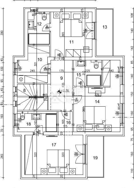 Unutarnje stepenište vodi na kat gdje je predviđen hodnik, utility, tri spavaće sobe s vlastitim kupaonicama ( dvije imaju izlaz na nenatkrivenu terasu ).
