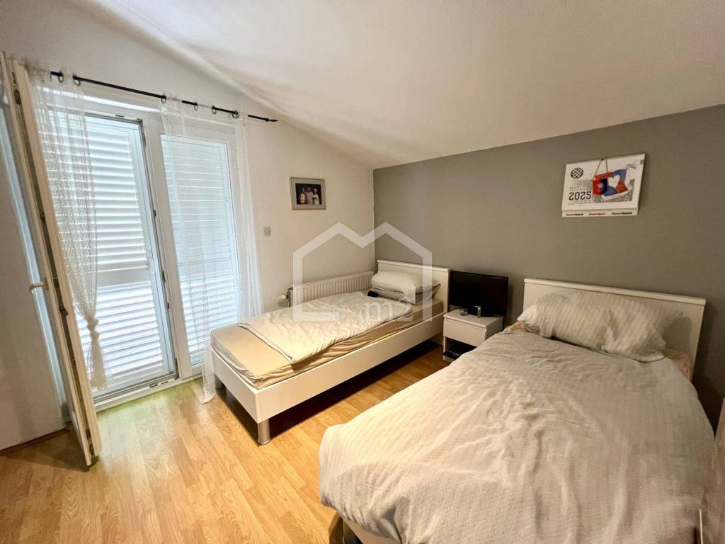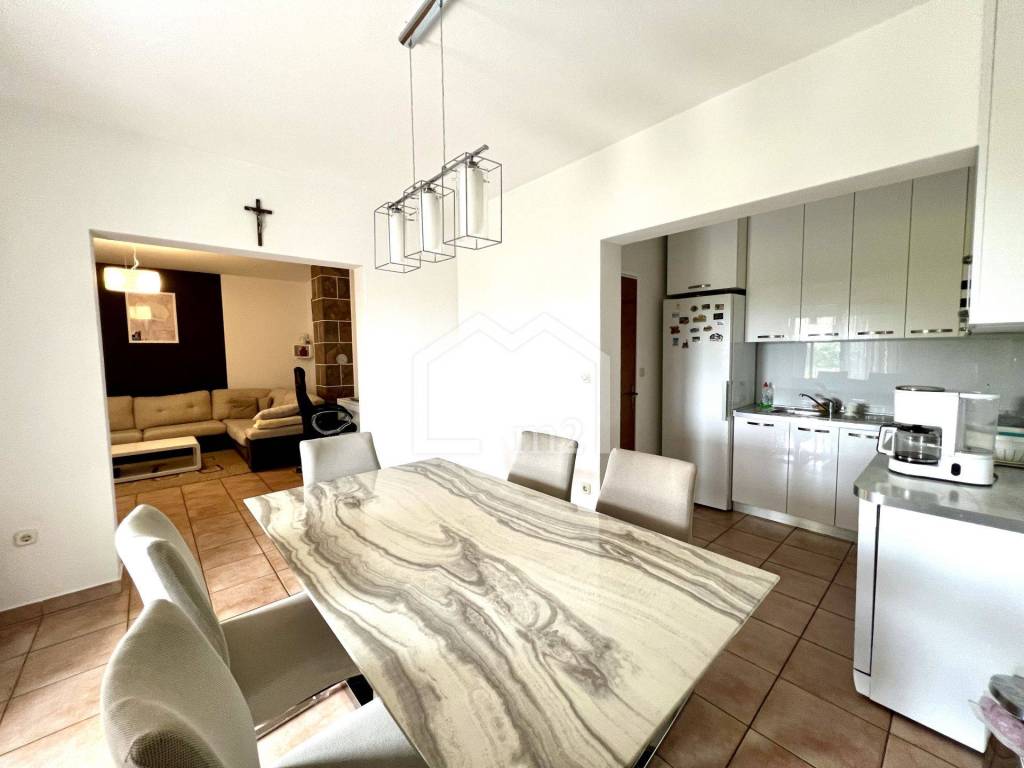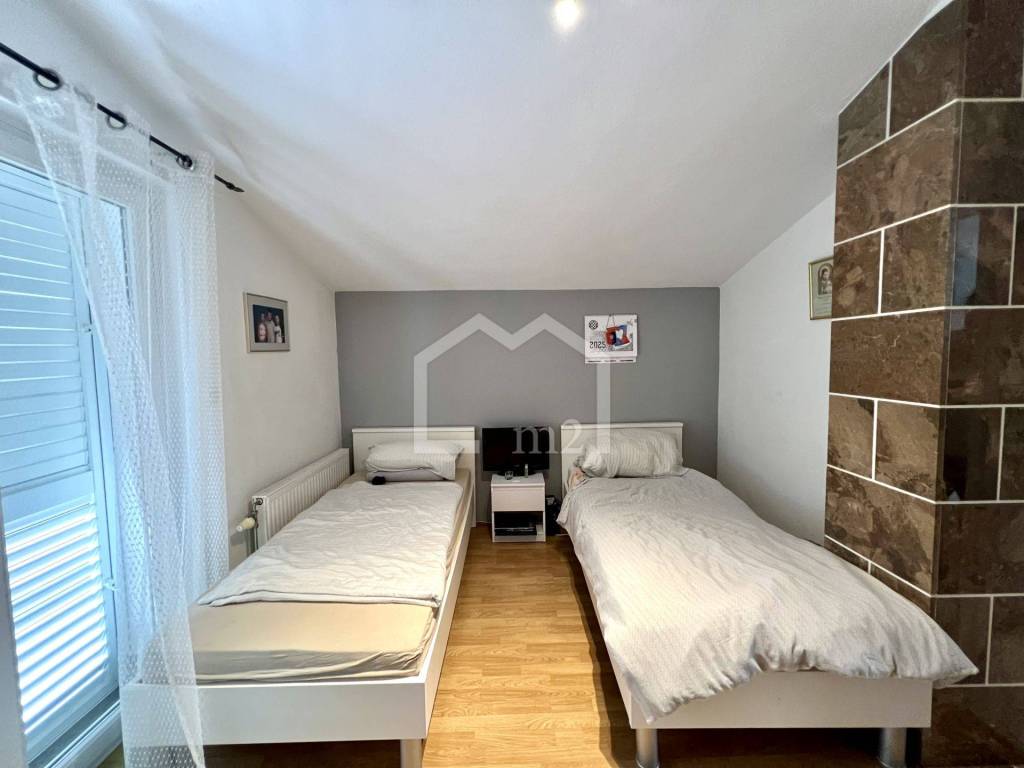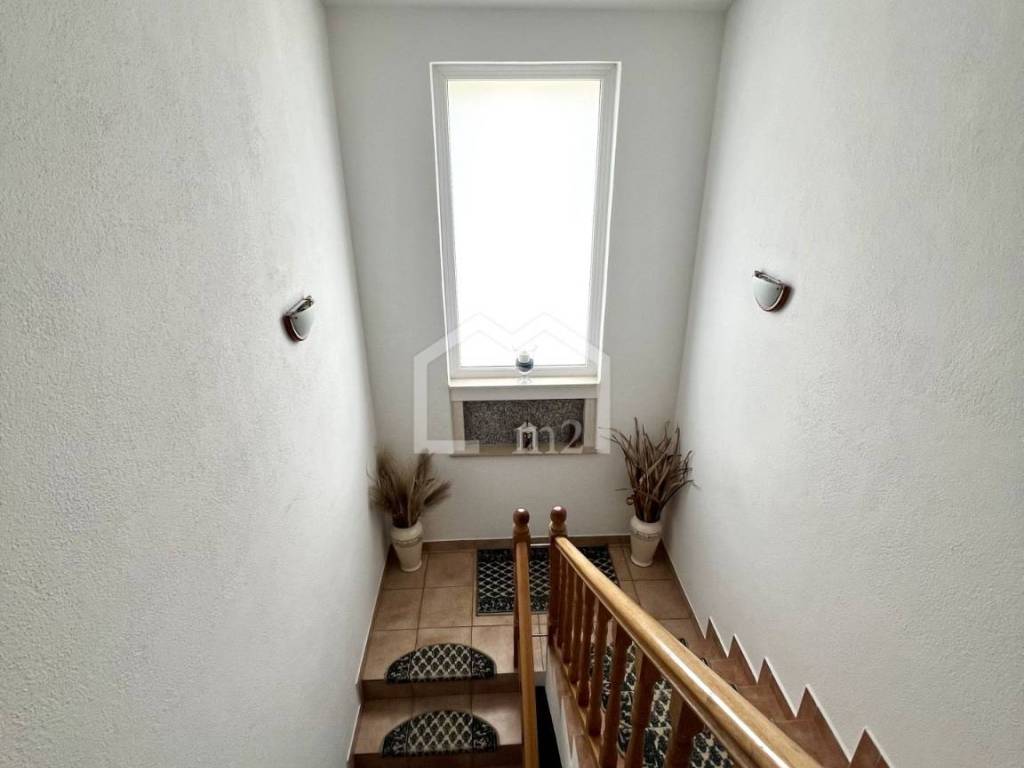 We mediate the sale of the house of Katnica in a quiet environment in Kaštel Sarah. It is located on a plot of 742 m2 and a living area of 180 m2. It consists of ground floor and first floor. The ground floor consists of an entrance part, kitchen and living room, bedroom, bathroom, and covered terrace. On the first floor there are four bedrooms, bathrooms and a large pantry. From each floor you can enjoy the sea view. A road that is also a blind street is led to the house, and a parking space for 6 cars is provided as part of the plot. The house also owns a garage that is now converted to the kitchen and living room and has central heating, air conditioning, barbecue and large garden. All the contents needed for life are only a few kilometers away. Ownership neatly.