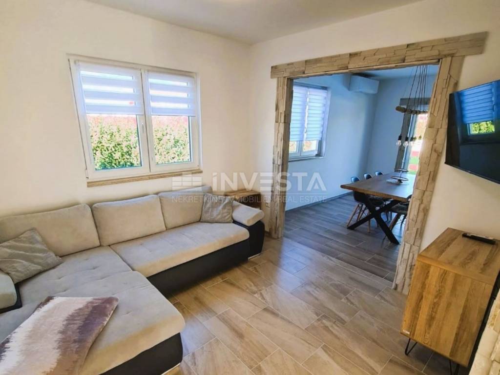 In a peaceful location in Sveti Petar u Šumi, a charming single-story house is for sale, offering 104 m² of living space, surrounded by a spacious yard of 990 m².