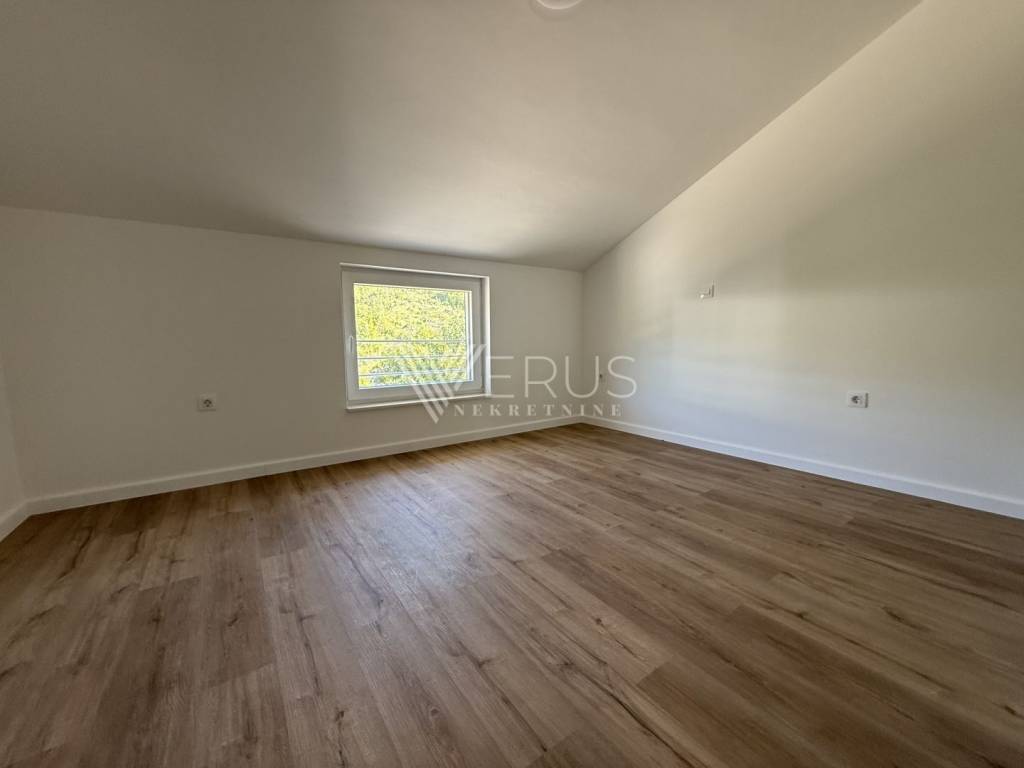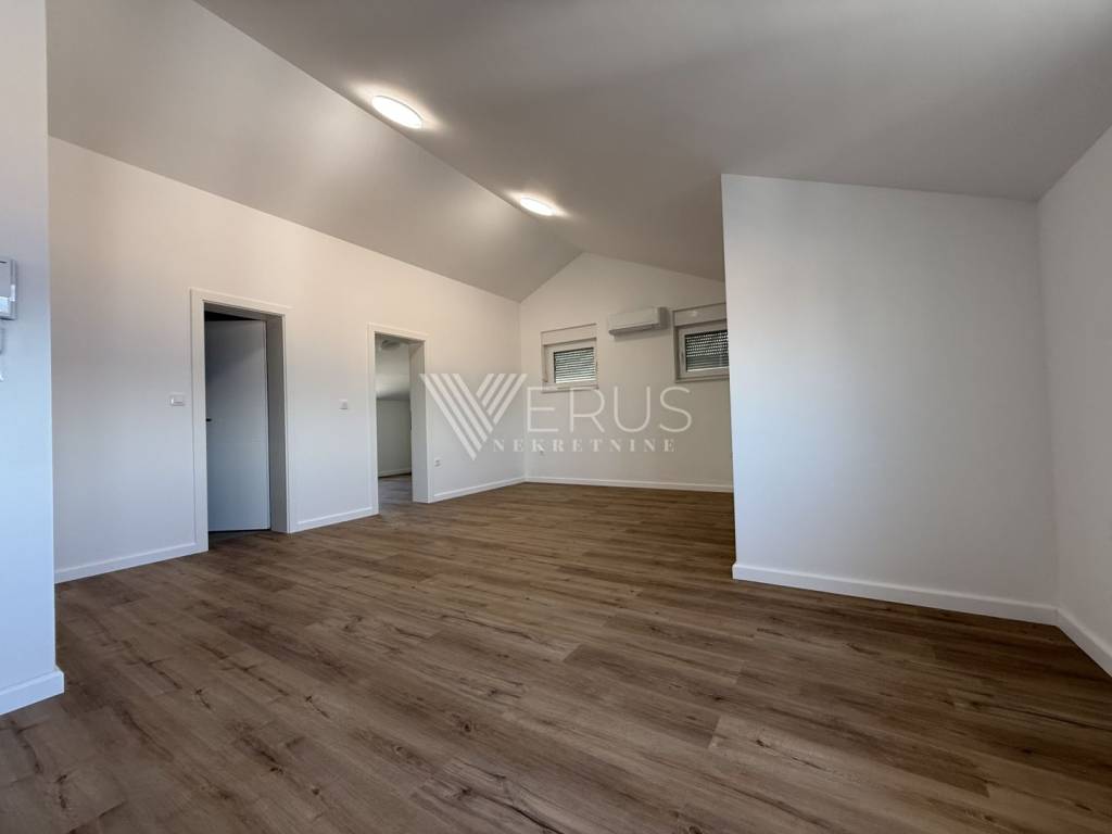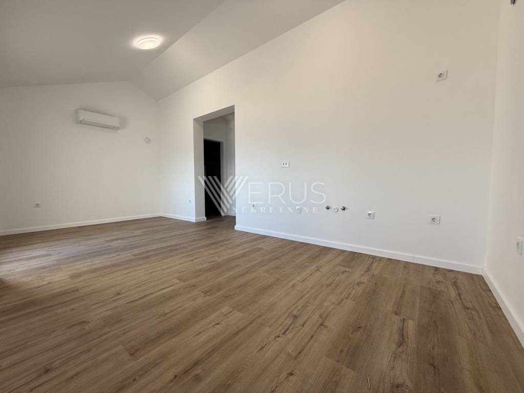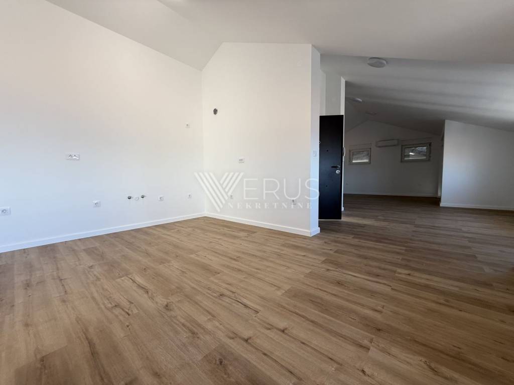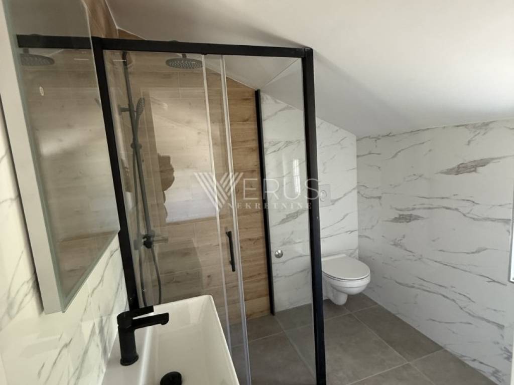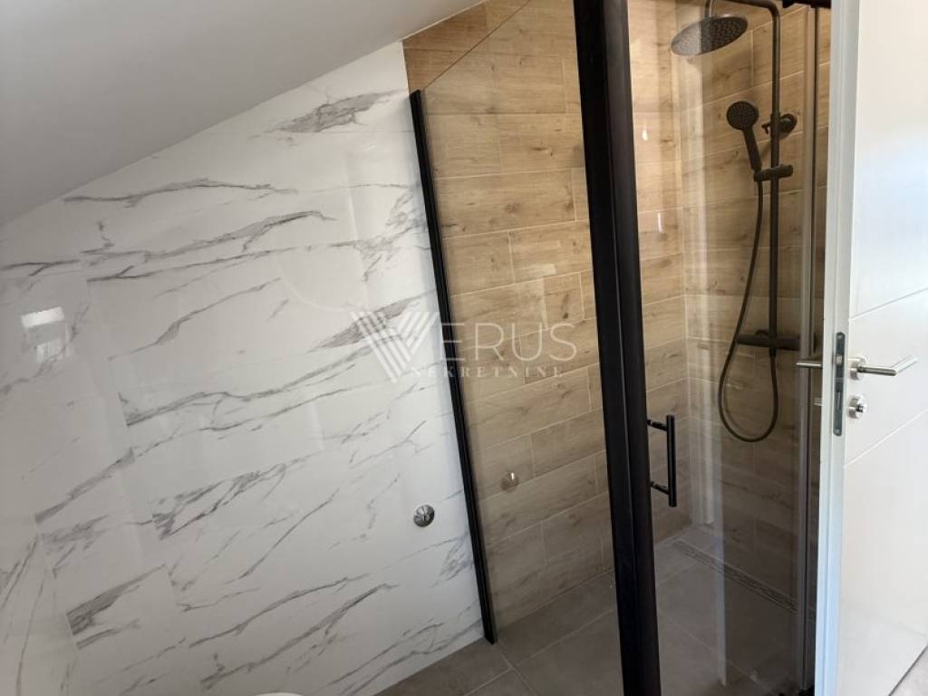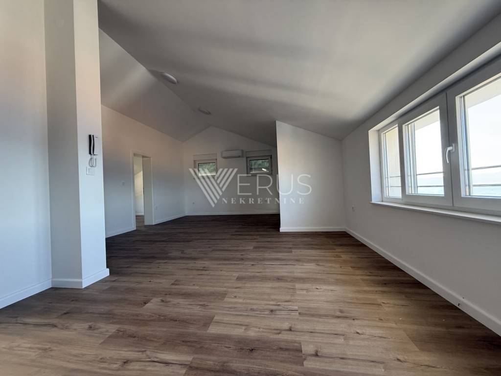 The penthouse is located on the top floor of a modern building with a total of four residential units, built in 2023/2024, and offers complete privacy and peace. The interior is thoughtfully designed to ensure maximum comfort and functionality. It consists of a spacious living room connected to the kitchen and dining room in an open concept, two elegantly decorated bedrooms, and two modern bathrooms. The master bedroom has its own bathroom, while the other is intended for guests.