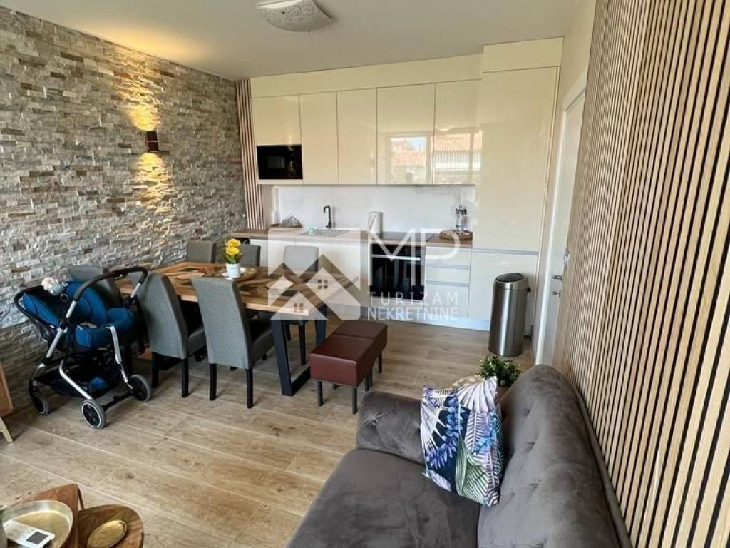 In an extremely busy location, just a few steps from the sea and the promenade, a completely renovated duplex apartment with a total area of 64.58 m² is for sale, located on the first (administrative) floor of the building.