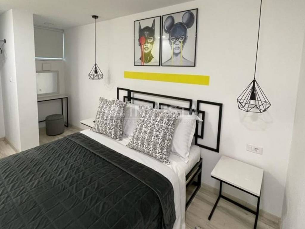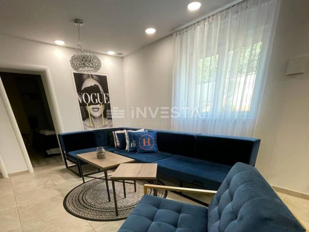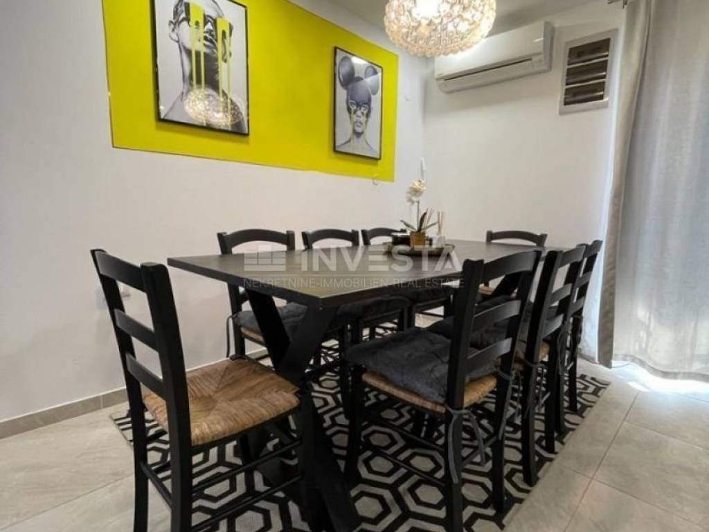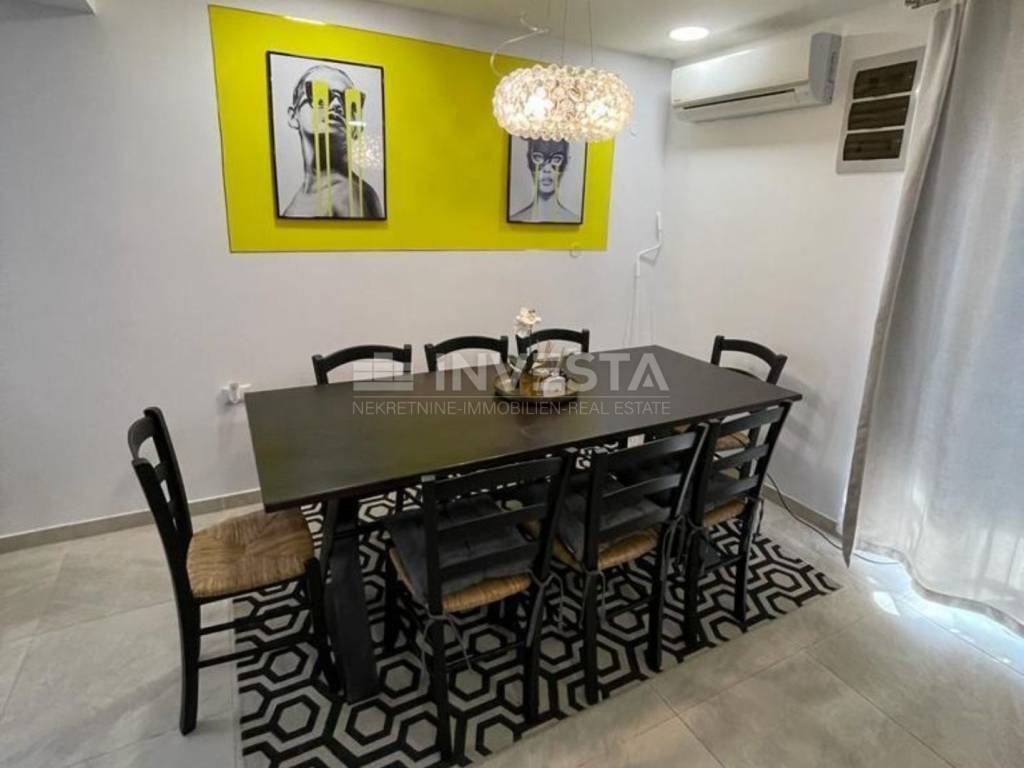 The property was fully renovated in 2019, using high-quality materials, and is furnished with designer furniture and modern appliances. An energy certificate of class B, air conditioning for heating and cooling, and a designated parking space within the yard add further value to this property.