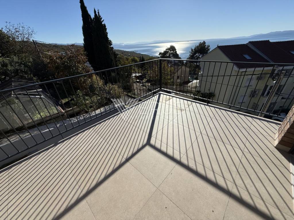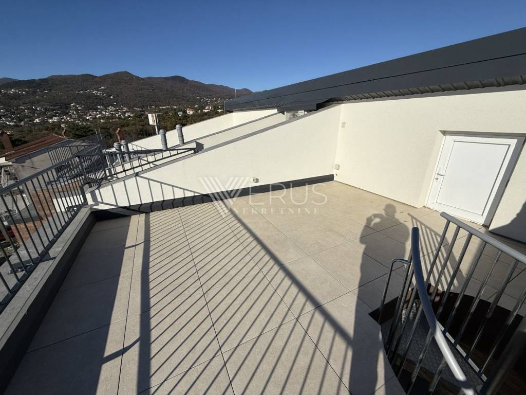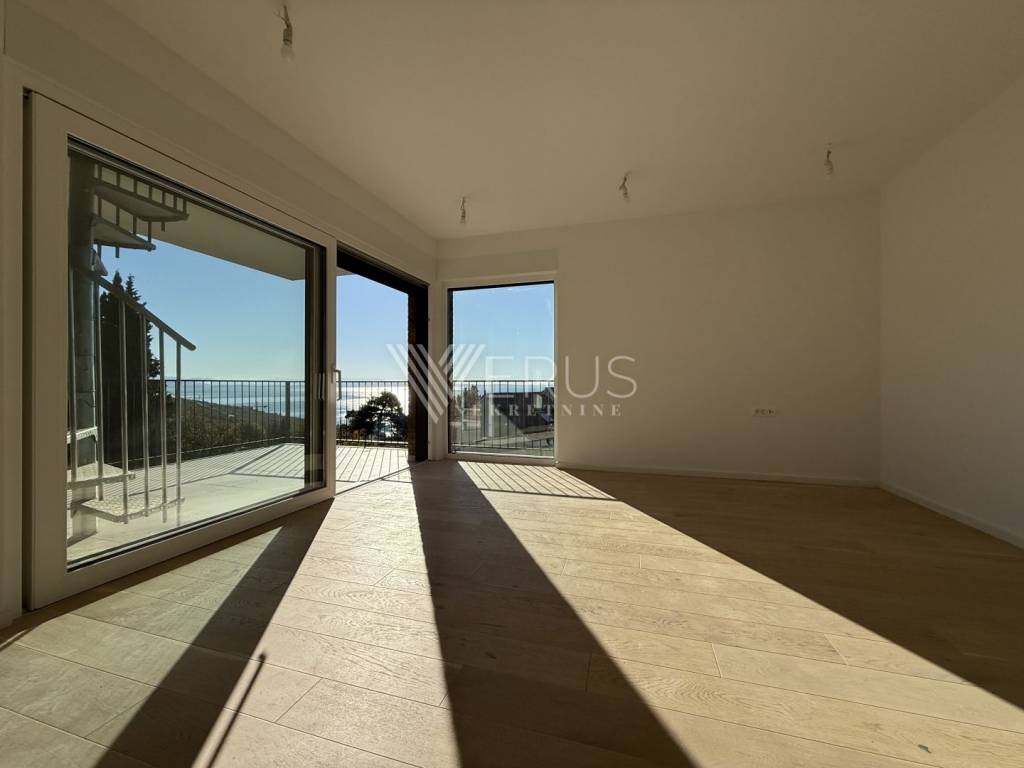 We offer an extremely elegant three-story apartment located in a luxurious boutique complex with only six residential units, distributed in two modern buildings. The project is located in a quiet, green environment, and it is only a few minutes' easy walk from the sea—only 300 meters as the crow flies. This property perfectly combines comfort, modern design, and exclusivity with one of the most beautiful views of Kvarner and Opatija.