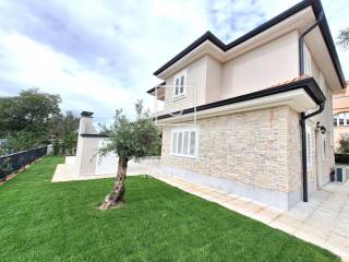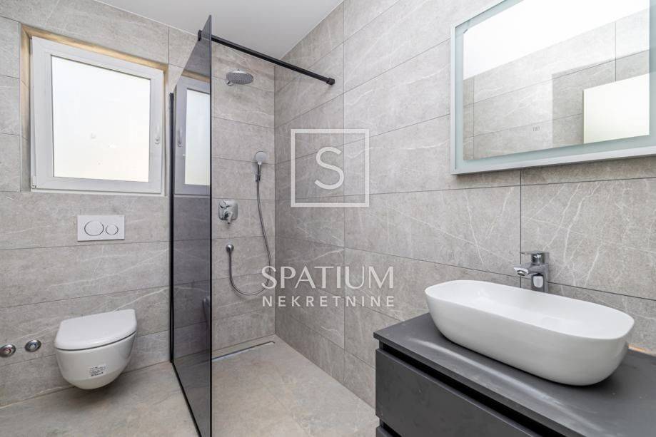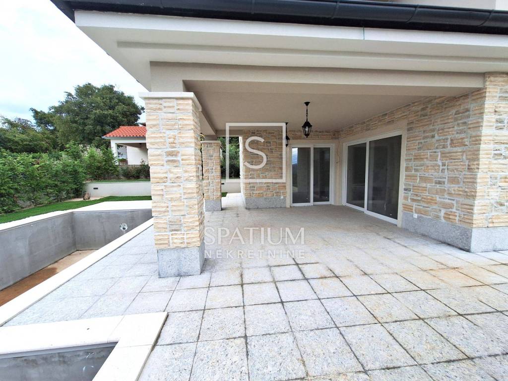 KRK ISLAND, GARICA, we have a beautiful new building, a stone villa in a quiet part of the island. This unique property offers a perfect combination of modern design and traditional Mediterranean style, and is ideal for those looking for the ultimate in comfort. The villa was built according to the highest standards and fully equipped with quality furniture. The spacious and bright rooms have underfloor heating in all parts of the house, ensuring maximum comfort throughout the year. On the ground floor there is a large open space where there is a living room and a kitchen with a dining room, and large glass walls, offering an unobstructed view and exit to the covered terrace and heated pool. The internal stairs lead to the first floor where there are three bedrooms, two of which have access to a shared balcony, and two bathrooms. There is a separate cottage with a sauna and jacuzzi on the landscaped garden, creating a private wellness oasis for relaxation. For additional security, the villa is equipped with an alarm system and video surveillance. VRBNIK is the ideal choice for your family and romantic vacation. It will enchant you with its old town core, historical heritage, interesting beaches, tastes of wine and original Krk dishes, and unique viewpoints. Vrbnik is simply a must-see! Vrbnik is located on the east coast of the island of Krk in the Kvarner Gulf. The old city center above the sea is truly enchanting. This ancient, stone city that emerges from the sea and plunges into the blue sky is very harmoniously built, in harmony with nature. For all other information, please feel free to contact us.