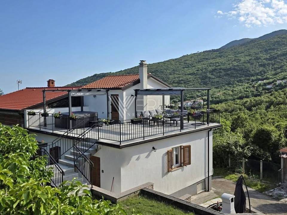 On the first floor there is a room where the sauna is located, and from it you can access a spacious terrace of 54 m². The terrace is designed as a private oasis for relaxation and is equipped with two pergolas; under one is a jacuzzi, while under the other there is comfortable garden furniture. From this height there is a spectacular, panoramic, breathtaking view.