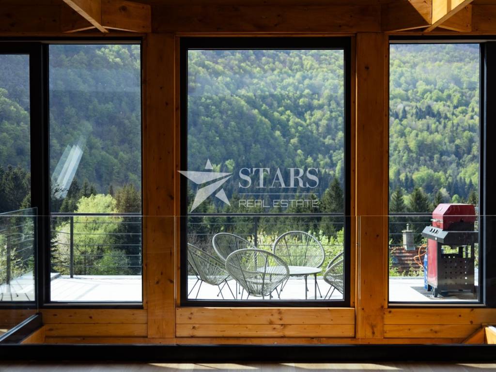 Nestled on a tranquil hillside near Delnice, this architecturally designed villa is a rare gem on the real estate market. Situated on a 1,088 m² plot, the property offers complete privacy and breathtaking views of unspoiled nature, blending luxury, functionality, and environmental harmony.