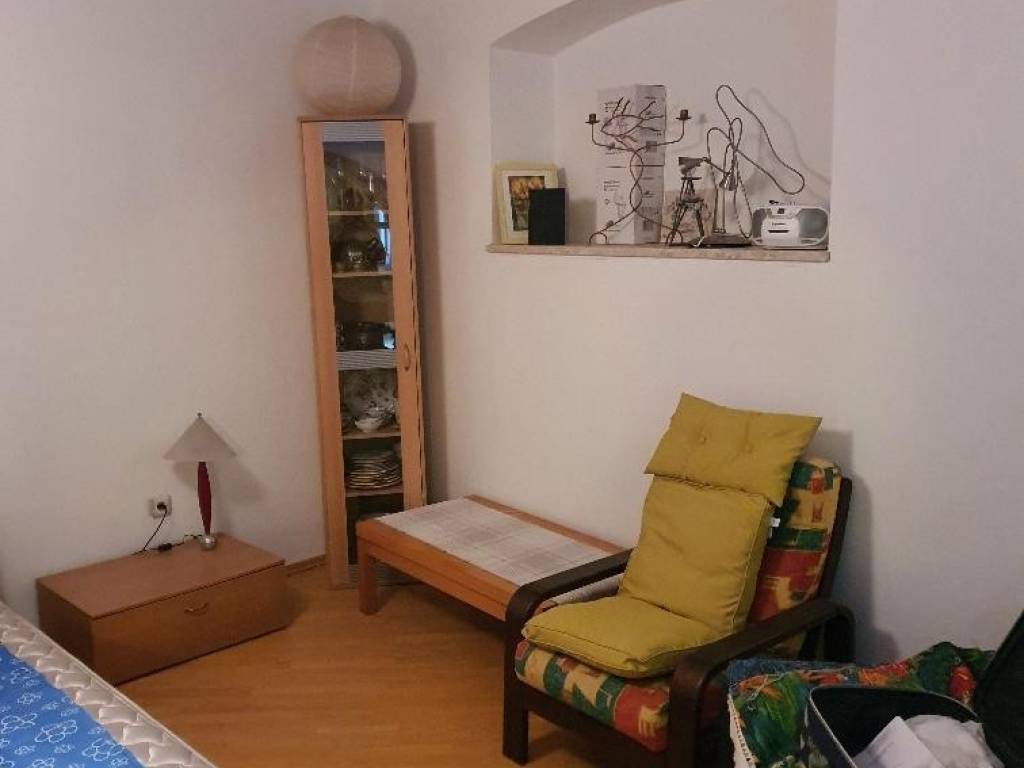 On the first floor there is an apartment with a living room, kitchen, bedroom and bathroom.