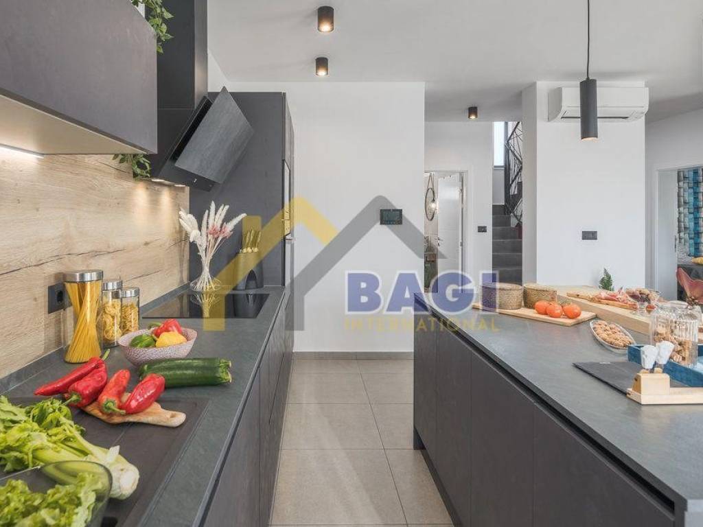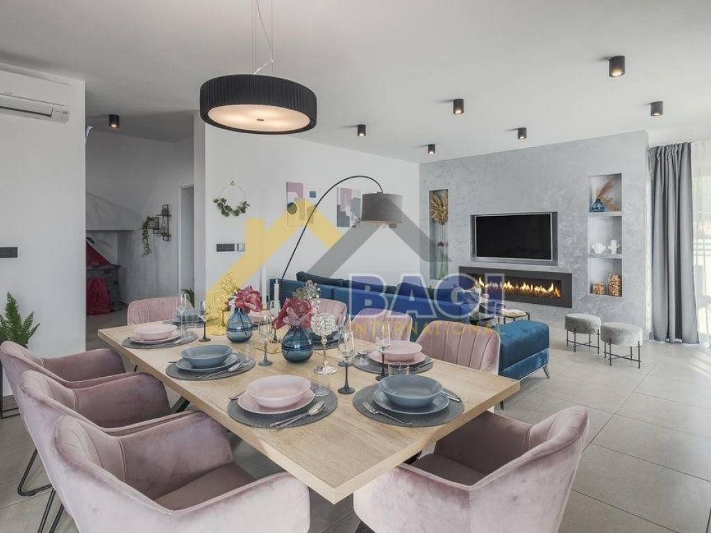 Modernly decorated detached villa for sale. The villa is spread over a landscaped garden of approximately 588m2 with a private pool and an irrigated garden, while the property itself has 187m2 and includes the ground floor and first floor. The ground floor has a high quality kitchen, living room, one bedroom and living room with pool and summer terrace with barbecue and summer kitchen. Upstairs are three spacious bedrooms, each with its own bathroom and exit to the balcony, upstairs is a room equipped as a gym. All rooms are air conditioned and under the entire villa is underfloor heating. The living room also has a modern wood-burning fireplace that gives a special atmosphere in the cool months. The property is for sale fully furnished. During the construction and furnishing of the property, attention was paid to the details, emphasizing comfort and luxury for future owners and guests. Quiet location allows the privacy of the villa, while in the immediate vicinity are all the necessary facilities for living restaurants, shops ...