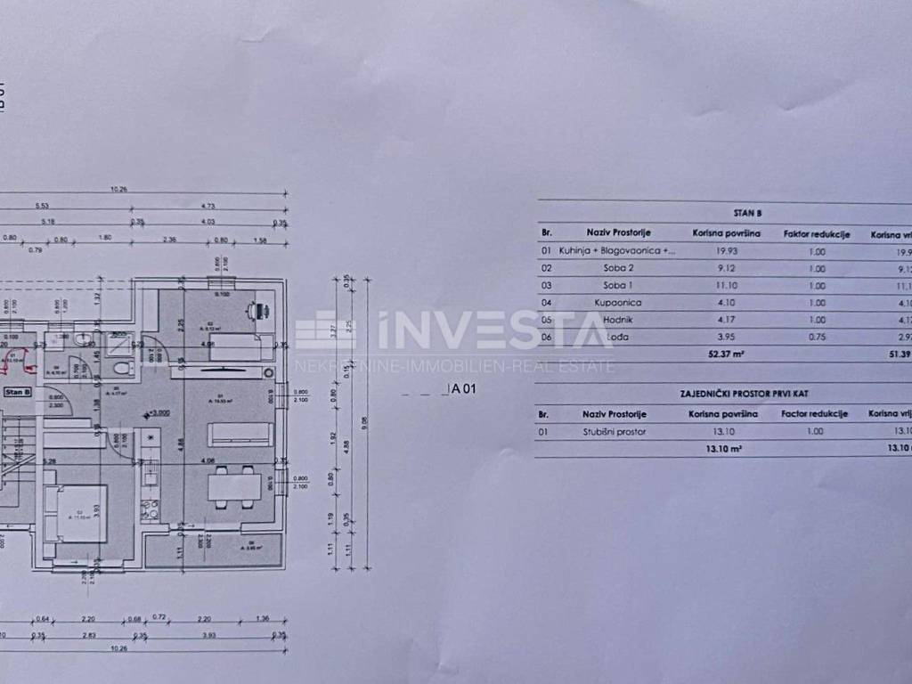 The apartment is situated on the first floor of a residential building. It consists of an entrance hallway, bathroom with shower, 2 bedrooms, kitchen and dining room with living area and access to the loggia.