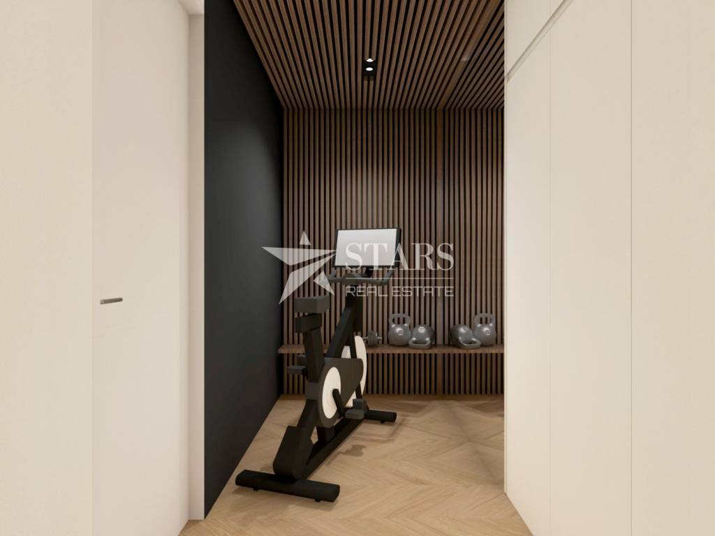 The apartment has a total area of 201 m², as per the building permit, of which 164 m² is interior living space, with the remainder including covered terraces, external storage, and a landscaped yard. It also includes three covered parking spaces, equipped with an EV charging station connected to rooftop solar panels. The private, gated entrance enhances the sense of exclusivity and security.