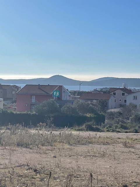 VODICE - Na prodaju građevinsko zemljište površine 870 m2, nalazi se na rubnom dijelu građevinske zone, pogled na grad i more.