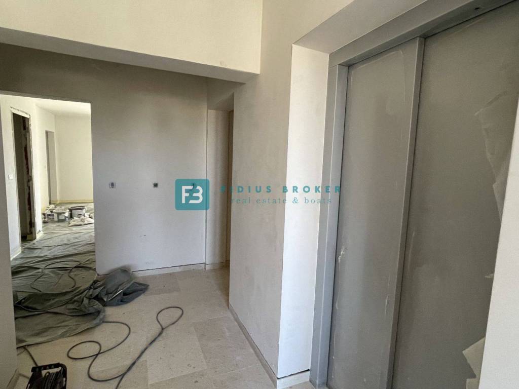 Apartment S5 is located on the 1st floor of the building, oriented to the southeast. It consists of an entrance hall, laundry/storage room, bedroom 1, bedroom 2, bedroom 3, hallway, bathroom 1, bathroom 2, kitchen with dining room and living area which has access to a spacious covered terrace of 16.90 m2 and an uncovered terrace of 6.34 m2 with a beautiful sea view. The apartment has a storage room in the basement and one parking space. The total usable area is 120.89 m2. The price is: €459,382 (VAT included - the buyer is exempt from paying 3% real estate tax).