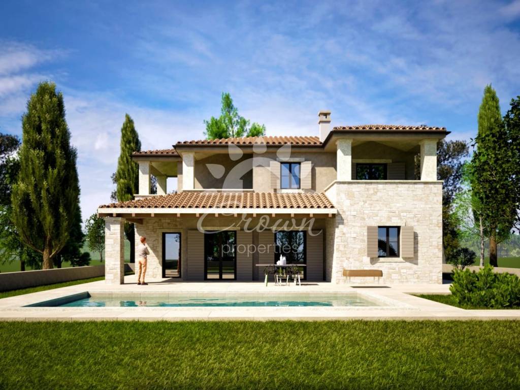 Special attention has been given to comfort: the entire villa is equipped with underfloor heating via a heat pump, while each room features fan coil units for cooling during warm summer days. The exterior is decorated with Istrian stone, giving the property a unique and authentic character. The garden will be enriched with olive trees and a centuries-old plane tree providing natural shade and Mediterranean charm. Two enclosed parking spaces are also available.