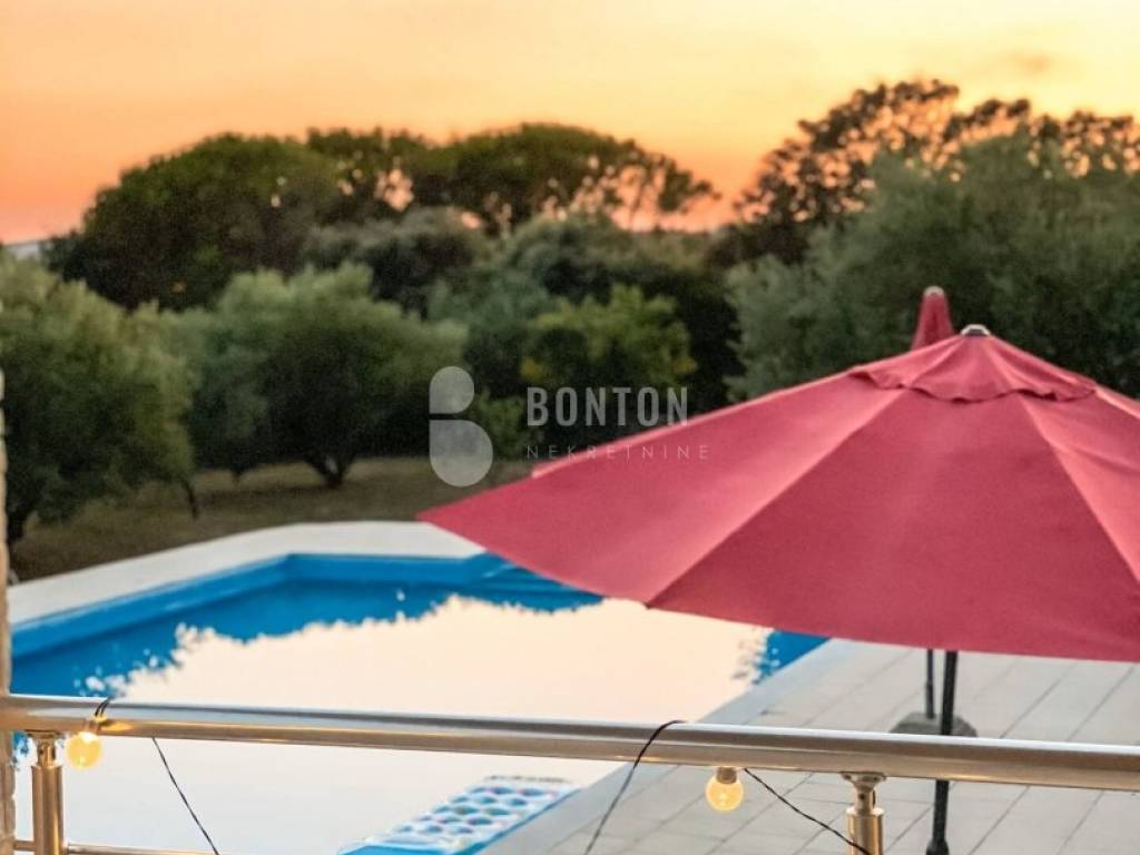 +The land under the pool is planted with an olive grove with 30 olive trees that bear fruit every year. The land is located in a building area and can be freely built on. The size of the plot is 830m2m and is specially marked on the Ownership List and has a special Land Registry insert.
