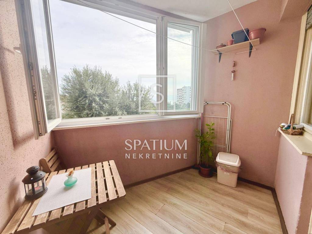 The apartment consists of a living room connected to the kitchen and dining room, two bedrooms, a spacious entrance hall, a utility room, a bathroom and a southern loggia that provides space for relaxing in the sun. The complete southern orientation makes the apartment bright and pleasant throughout the day, and each room offers a partial view of the sea.