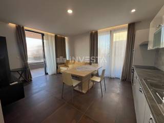 Kitchen with dining and living room: open space concept with access to the terrace equipped with high-quality joinery.