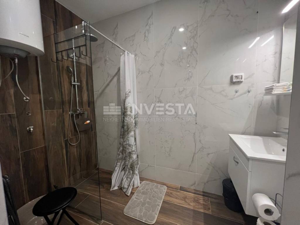 The apartment is located on the first floor of a residential building in the attractive Medulin district, only 100 meters from the sea and beautiful beaches.