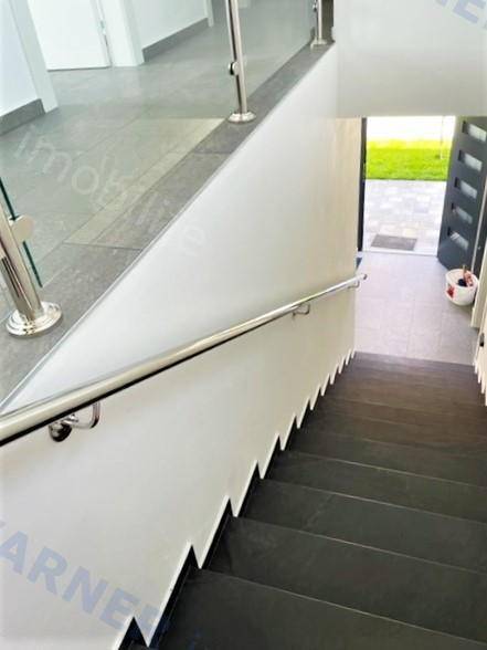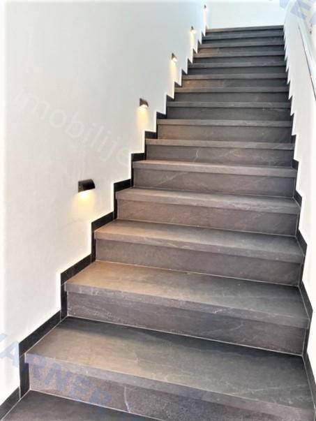 The internal stairs lead to the first floor where there are 3 bedrooms, two bathrooms, and a spacious terrace with beautiful sea views.