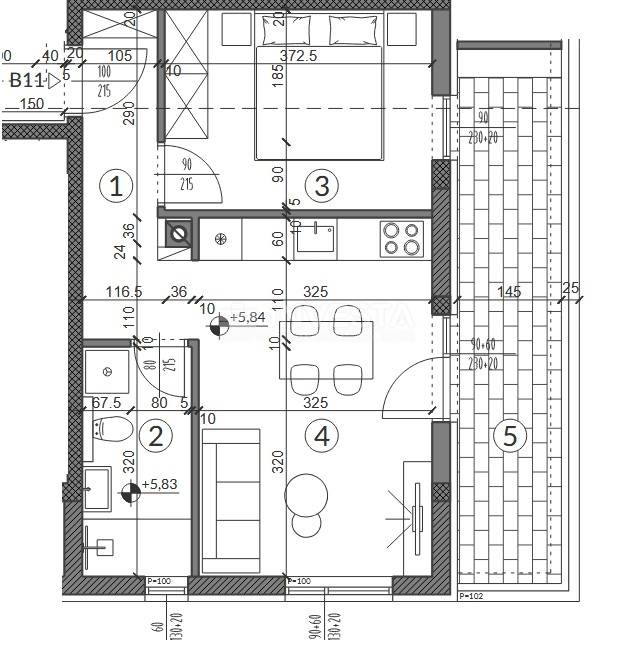 The apartments will be equipped with PVC joinery, an air conditioning unit in the living room, sanitary fittings, and there will be an option to choose from 4 ceramic tile models.