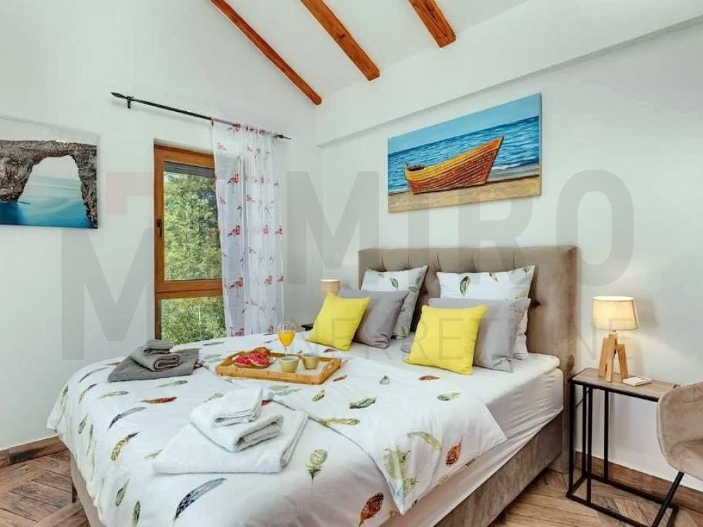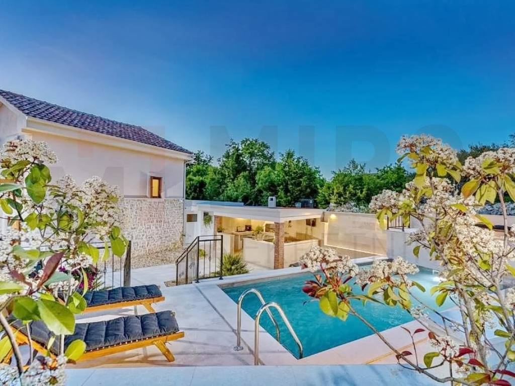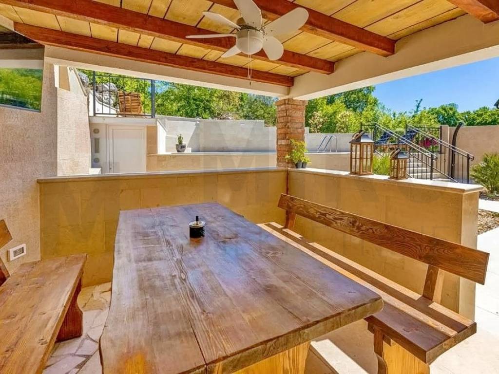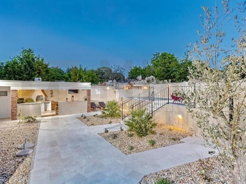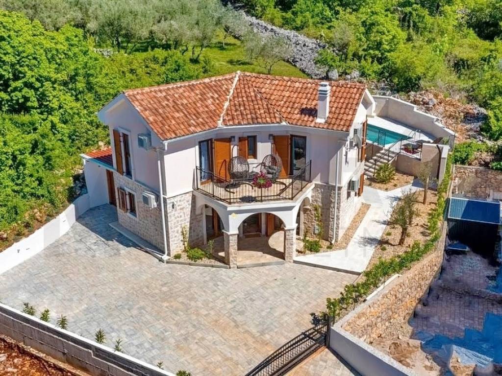 Island of Krk, Malinska, surroundings, sale, new stone houses with swimming pool, summer kitchen and sea view. The house of 160 m2 consists of a ground floor and a first floor. On the ground floor there is an entrance area, a bathroom, a kitchen with a dining room and a spacious living room with access to a large covered terrace and garden. There are 3 bedrooms on the first floor, two of which have their own bathroom and access to the terrace. The spacious garden area of 445 m2 includes a swimming pool with salt water and heating, a sunbathing area, a summer kitchen and three parking spaces. The house is characterized by quality construction. The house is sold furnished. The house is located in a quiet location without city noise and crowds. The real estate is owned by a natural person and in the name of its transfer, the buyer is obliged to pay real estate sales tax in the amount of 3%. The seller of the real estate guarantees proper ownership documentation. Visit us and find the square footage of your home!
