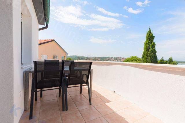 This modernly designed house has a total living area of 110 m2, consisting of a ground floor and an upper floor connected by an internal staircase. The ground floor offers the comfort of a kitchen, dining area, spacious living room, one bedroom, and a bathroom. Upstairs, you will find two additional bedrooms, a bathroom, a living area, a tea kitchen, and a terrace with a stunning sea view.