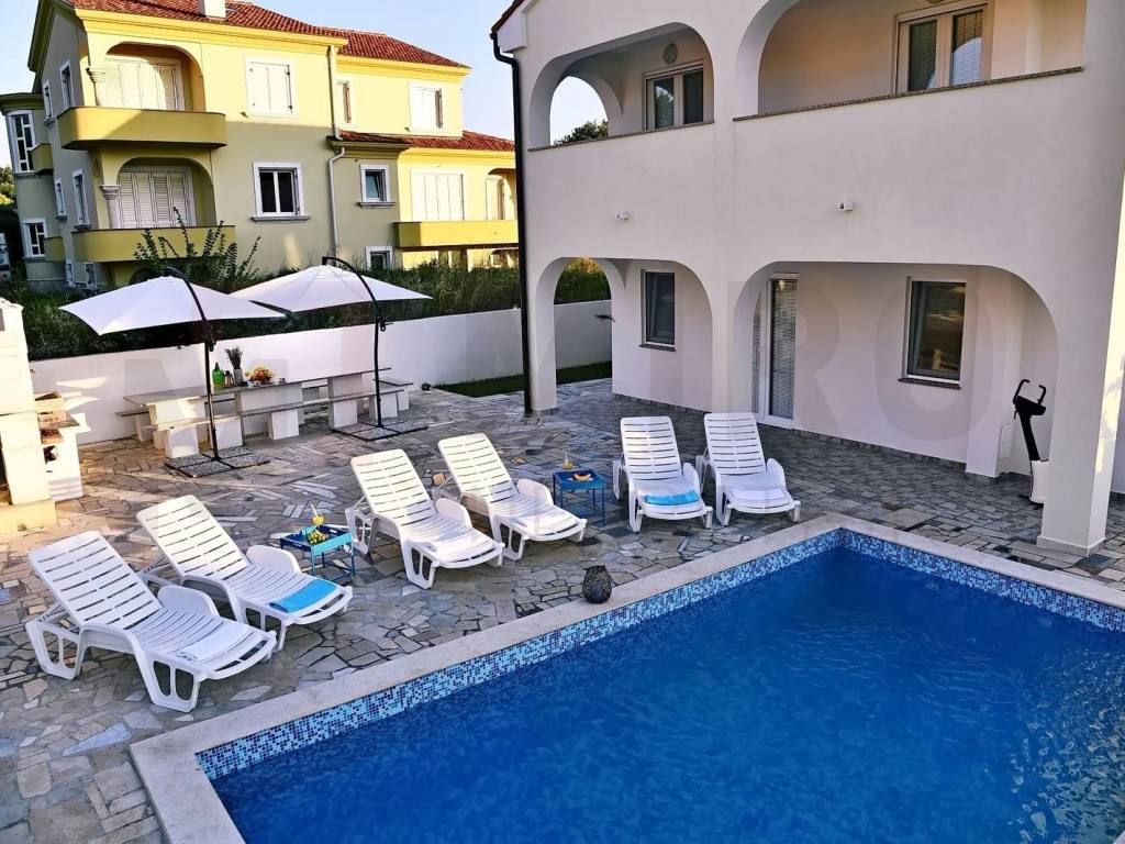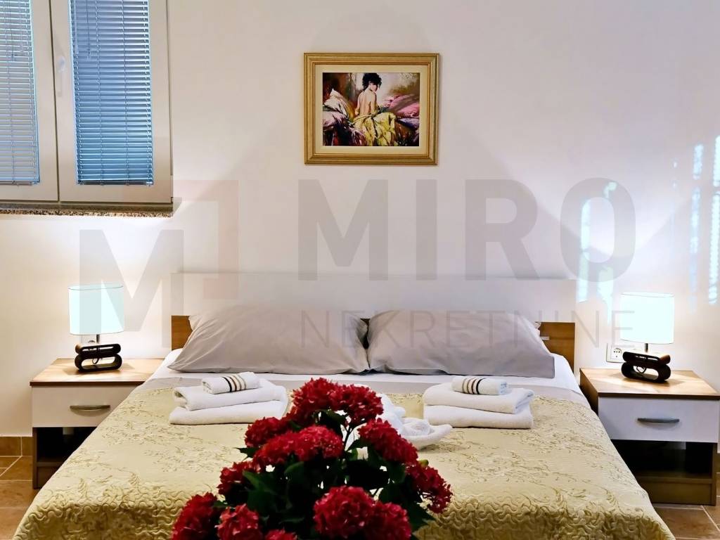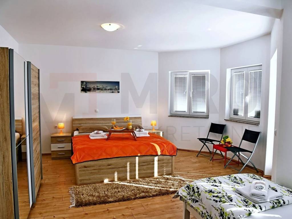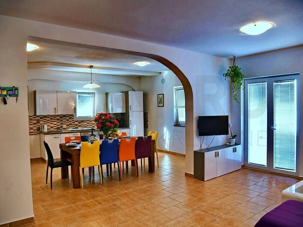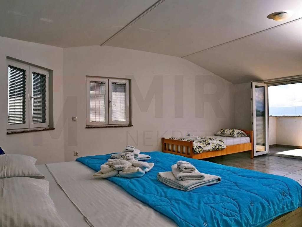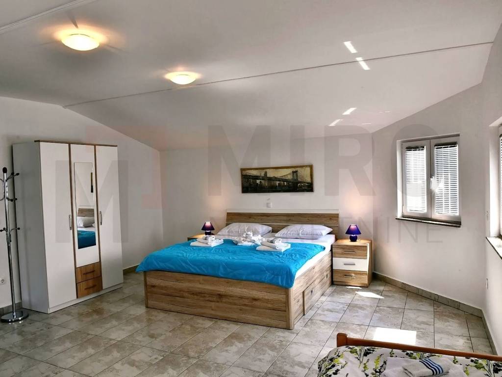 The island of Krk, the vicinity of Malinska, a residential building of 480 m2 of living space built on a plot of 607 m2. The building was renovated in 2019, it has basement, ground floor and two floors. In the basement there is a cellar, a storage room, a bathroom, a hall, a gym, a room, a boiler room. The floors are connected by an internal staircase, on the ground floor there is an apartment consisting of a kitchen, dining room, bathroom, living room, bedroom, bathroom, laundry room and toilet. The residential unit extends over the entire ground floor and has access to the garden, which is fully landscaped. On the same floor there is a 21 m2 swimming pool, brick benches and a table next to the brick grill, outdoor shower. On the 1st floor there are 3 rooms with three bathrooms and three balconies. On the 2nd floor there is an apartment with a large terrace and a beautiful view of the sea! It consists of a kitchen, dining room, living room/bedroom. On the same floor there is also an attic that is used as a storage room. There are 10 parking spaces in the garden. Opportunity for investors for tourism purposes or suitable for a nursing home. The seller of the apartment guarantees proper ownership documentation. Miro Nekretnine will help you with the transfer of property ownership and utility connections. Visit us and find the square footage of your home!