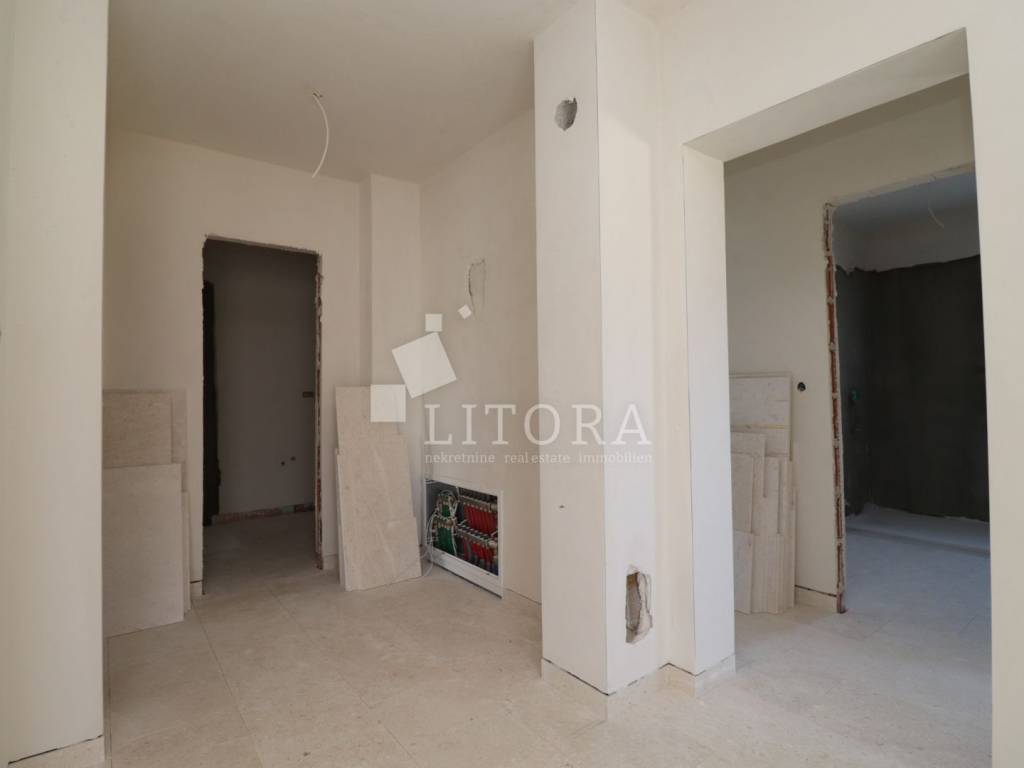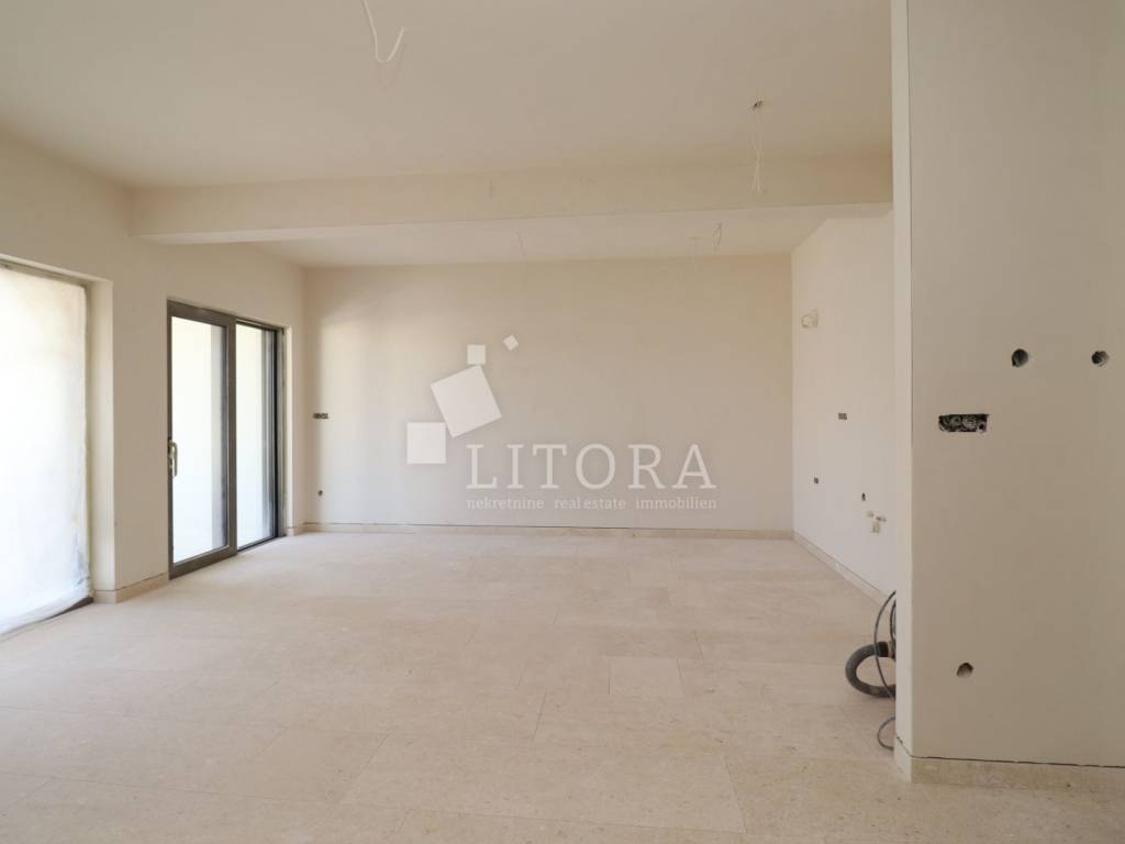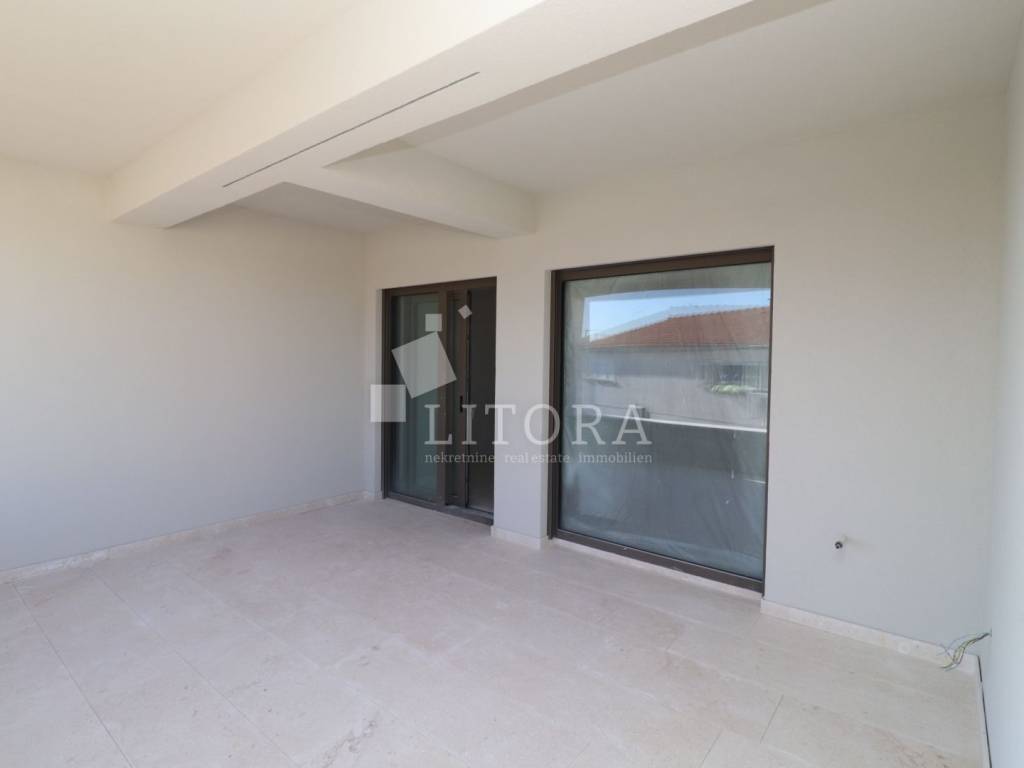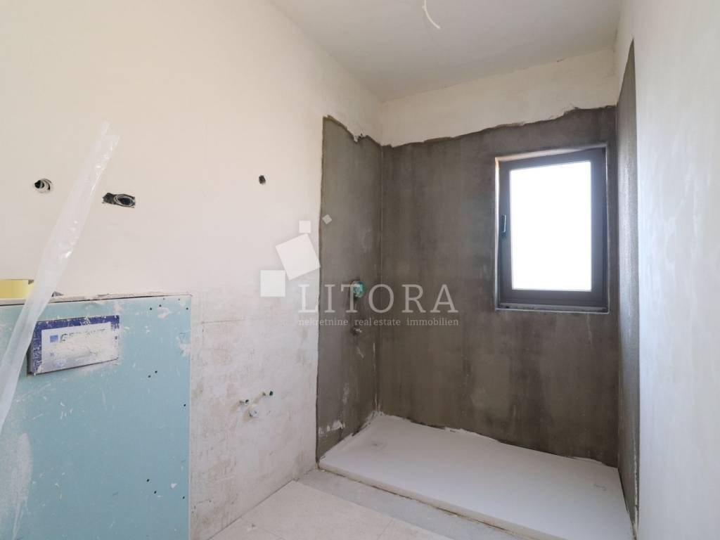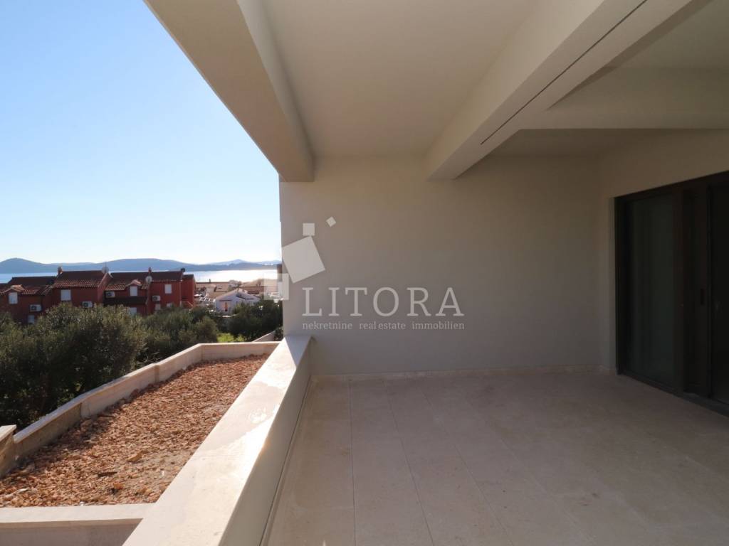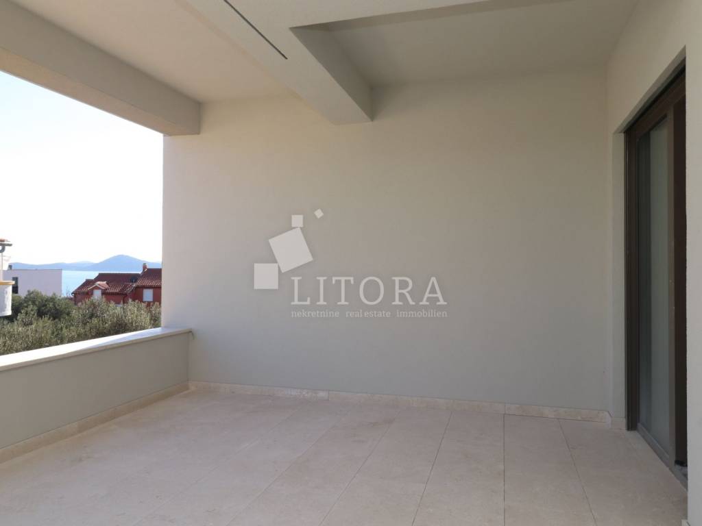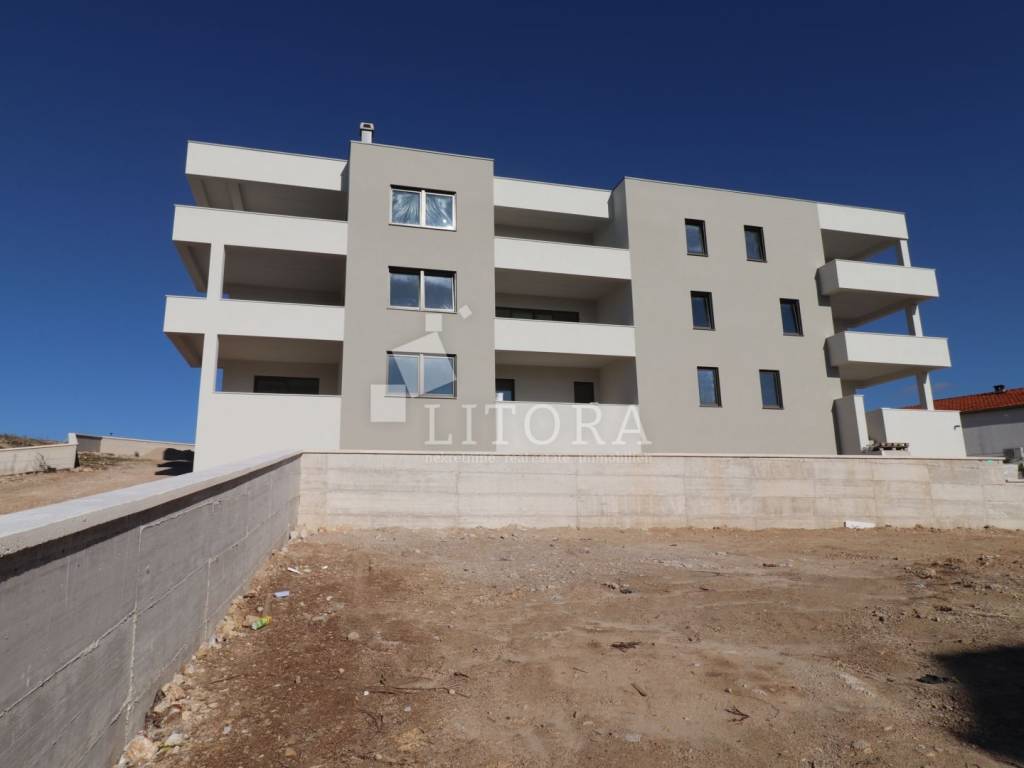 Vodice, new construction – 2-bedroom apartment with garden and panoramic sea view. Residential unit S1 is located on the ground floor of the building, southeast-oriented, with a total usable area of 74.78 m². It consists of an entrance hall, laundry room, bathroom, two bedrooms, and an open-plan kitchen with dining and living area, with access to a spacious covered terrace of 19.17 m². The terrace leads directly to the garden that belongs to this apartment. The unit also includes a designated part of the garden, a storage room in the basement, and one parking space. The building is a multi-unit residential complex with 10 apartments, offering panoramic views of the city and the sea. It consists of four floors: basement + ground floor + first floor + second floor. The building features a modern design and will be equipped with high-quality flooring, interior and exterior carpentry, air conditioning for heating and cooling in every room, electric roller shutters, and an elevator. All unit terraces will offer sea views. Each unit comes with a comfortable parking space within the courtyard and a dedicated storage room in the basement. The distance to Plava plaža (Blue Beach) is 840 m, and 750 m to the town center and all major amenities.