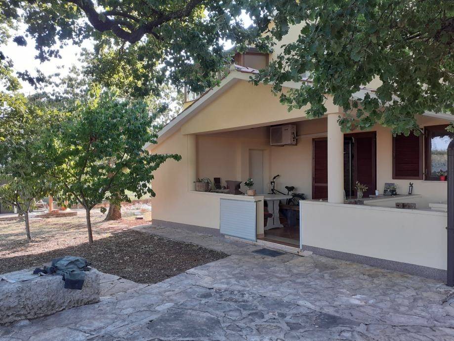 On the ground floor there is an apartment with 3 bedrooms, 2 bathrooms with toilets, a kitchen, an entrance hall, a study, and 2 terraces, one of which is covered and has a summer kitchen.