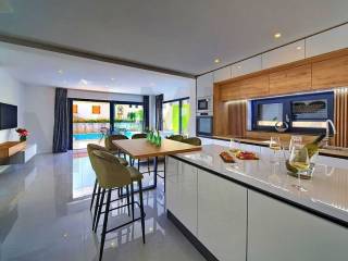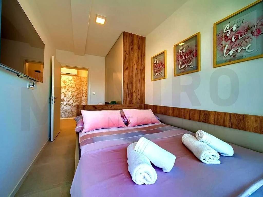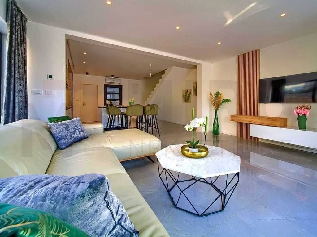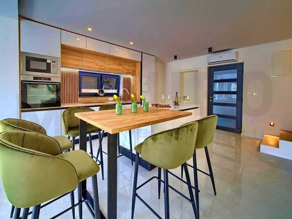 The island of Krk, Malinska, a modern two-story apartment in a new building with a swimming pool and garden for sale. The apartment of 91 m2 consists on the ground floor of an entrance hall, a bathroom and a space that unites the living room, kitchen and dining room with access to the terrace and a beautifully landscaped garden of 124 m2 with a swimming pool and a sunbathing area. Internal stairs lead to the first floor where there are three bedrooms, two bathrooms and a covered terrace. It has one parking space in the common courtyard of the building. Multisplit air conditioning, heating/cooling, underfloor heating and modern sanitary ware and floor coverings are just some of the features of this beautiful apartment. It is sold fully equipped with quality furniture and electrical appliances and is ready for immediate occupancy. It is located in a quiet location, only 850 m from beautiful beaches and the center with all the necessary amenities. An excellent opportunity for your own residence or for tourist rental. The apartment is owned by a natural person and the buyer is obliged to pay real estate sales tax in the amount of 3%. The seller of the property guarantees proper ownership documentation. Visit us and find the square footage of your home!